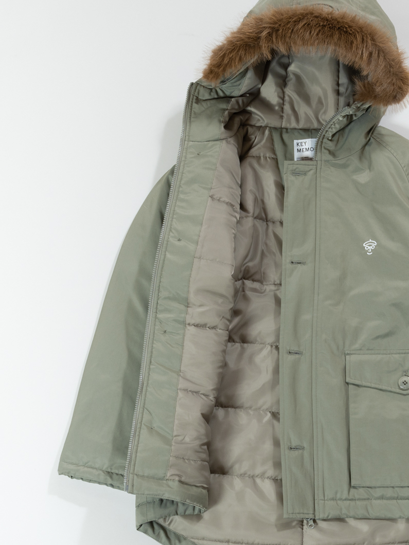 ファーは取り外しが可能で背面の部分も紐を絞っていただくと丈感も調整ができますので