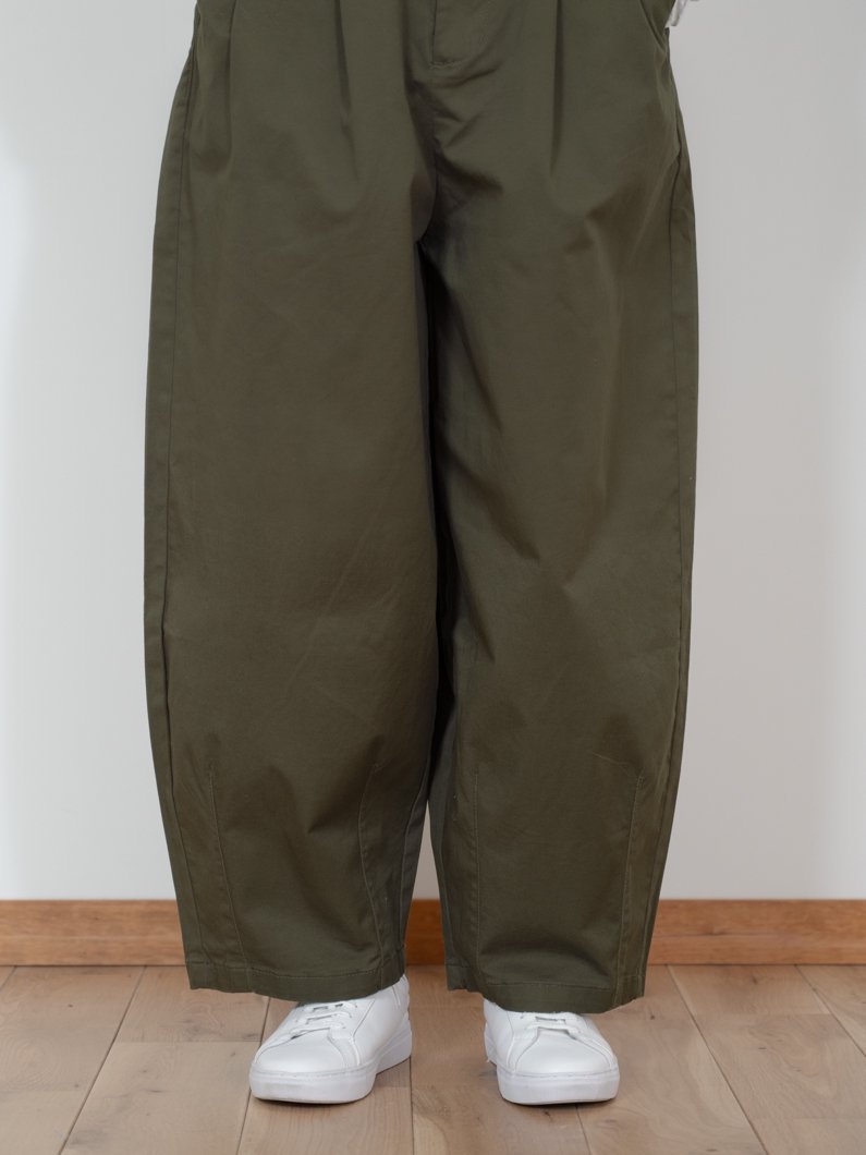 ストレッチの効いたカラーチノ素材のサーカスパンツ。