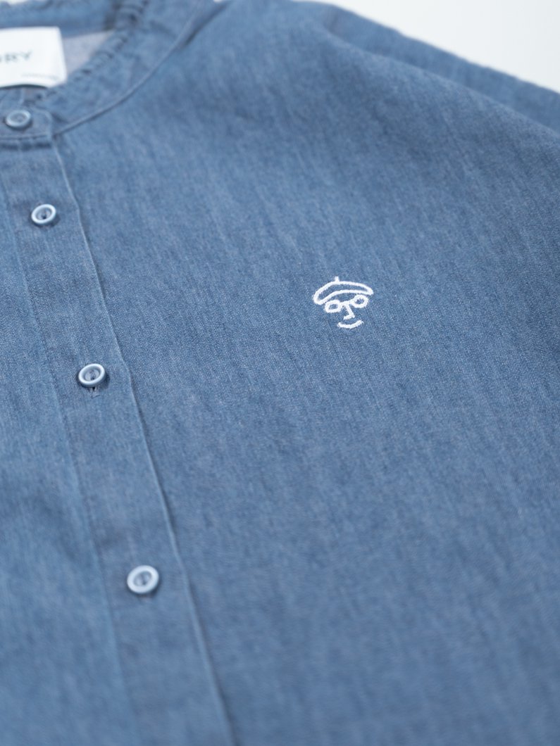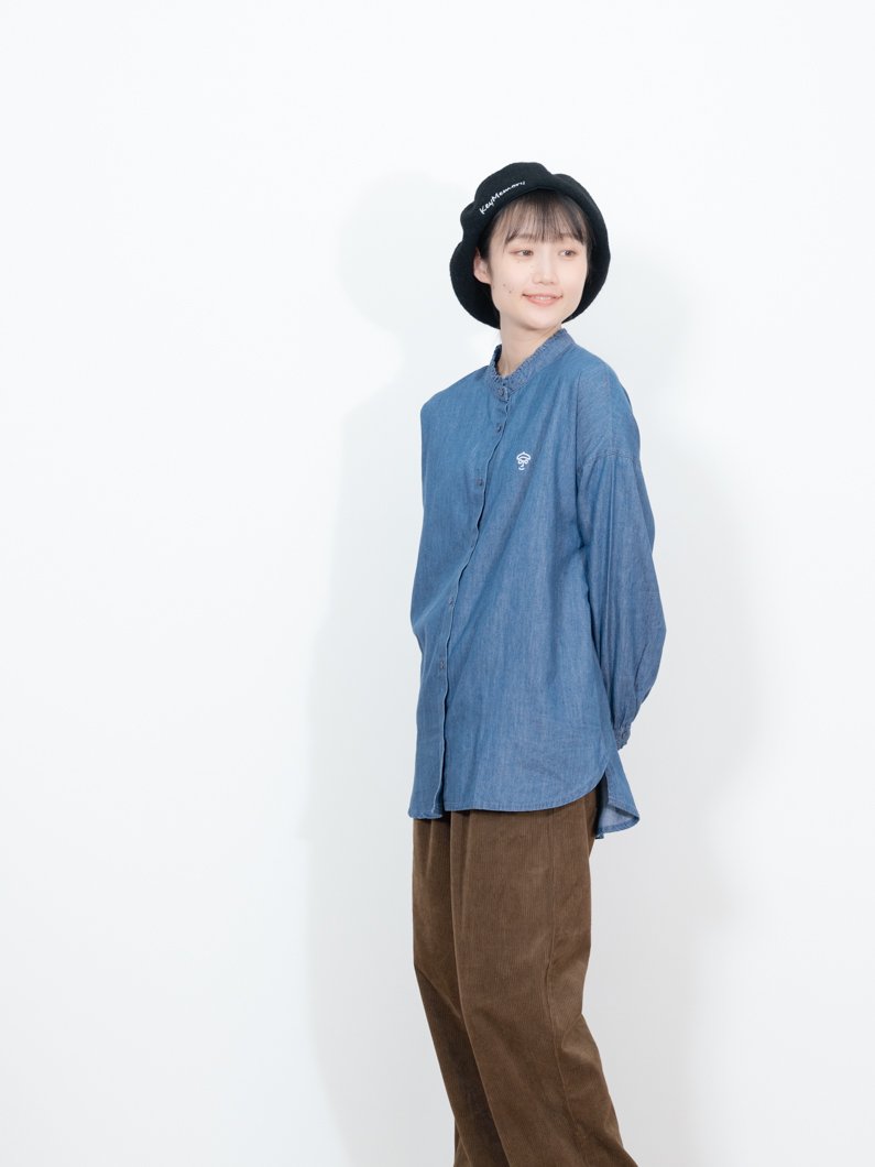 インナーとして首元・袖口のフリルを出して頂いてワンポイントになるデニムシャツです。