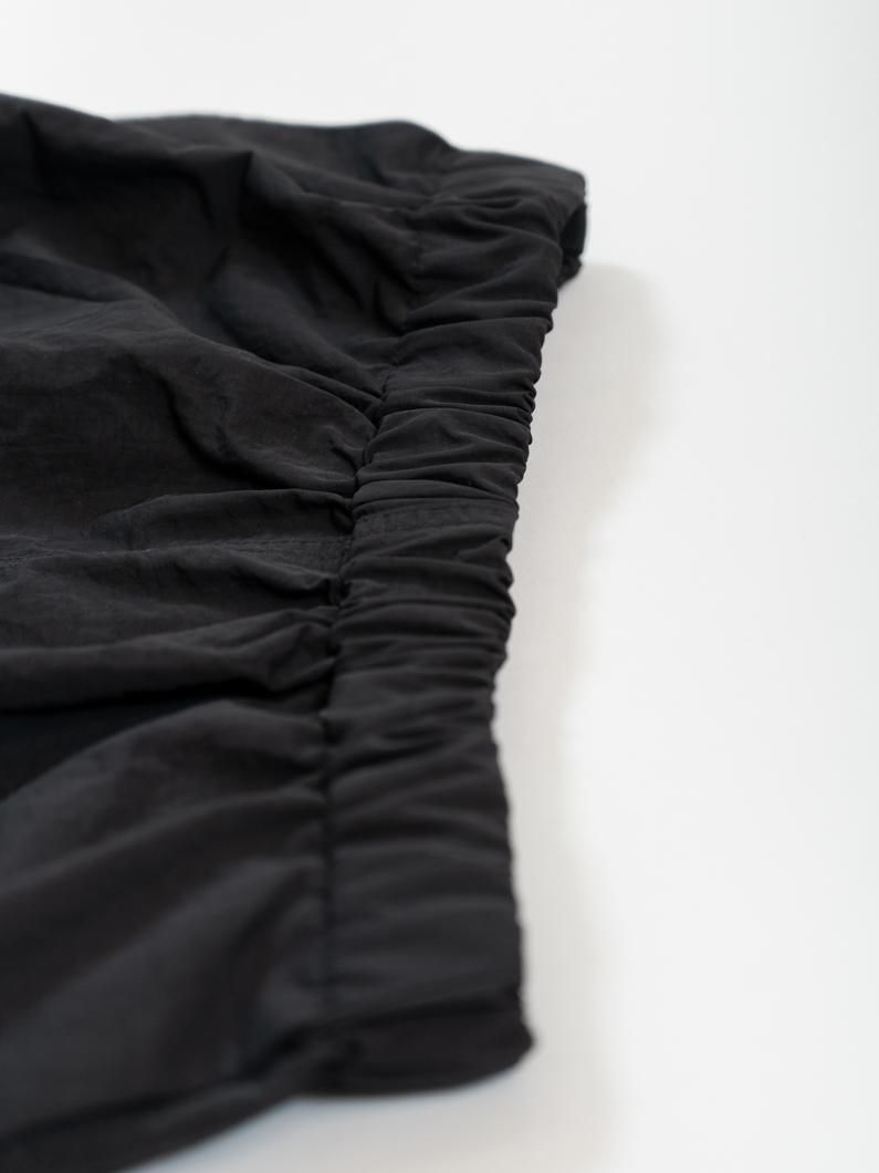 裾にはドローコードを付けており、絞ってバルーンシルエット