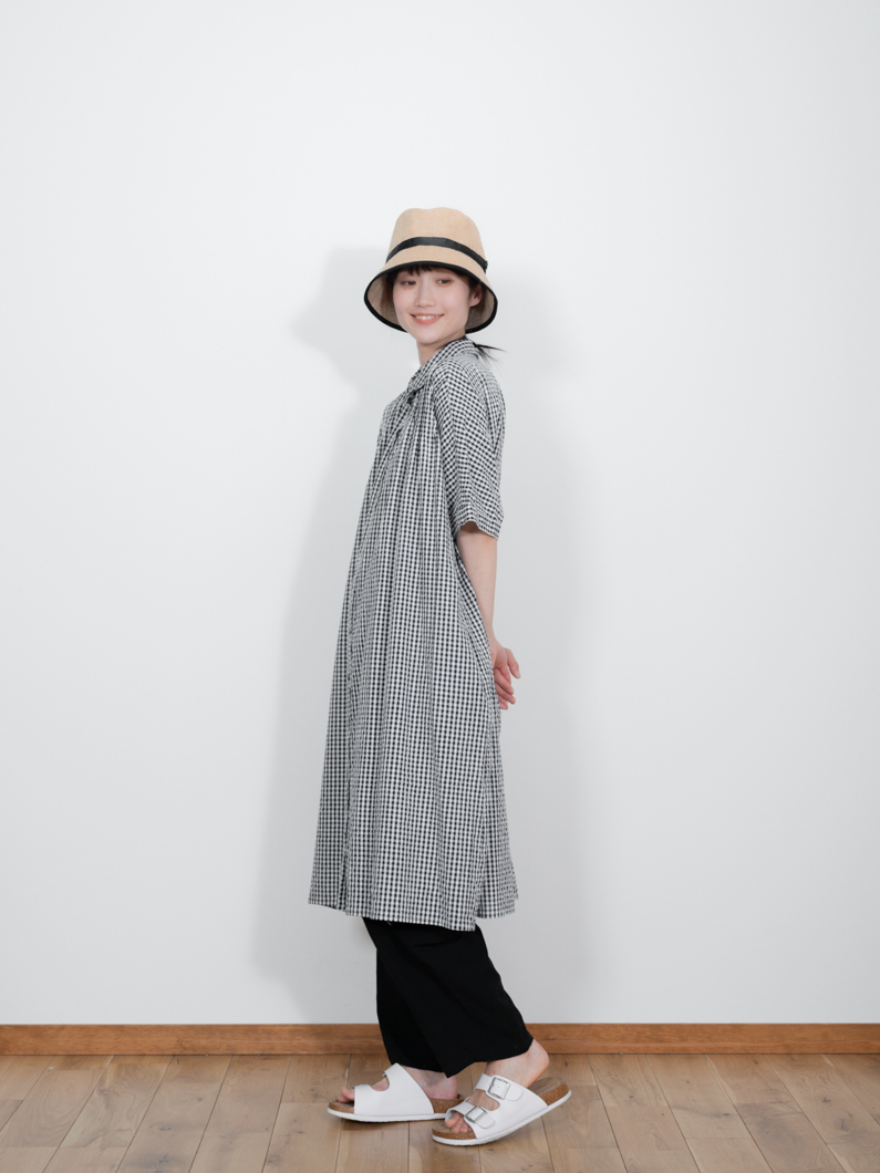 今回のワンピースは、少し凹凸あるサッカー生地を