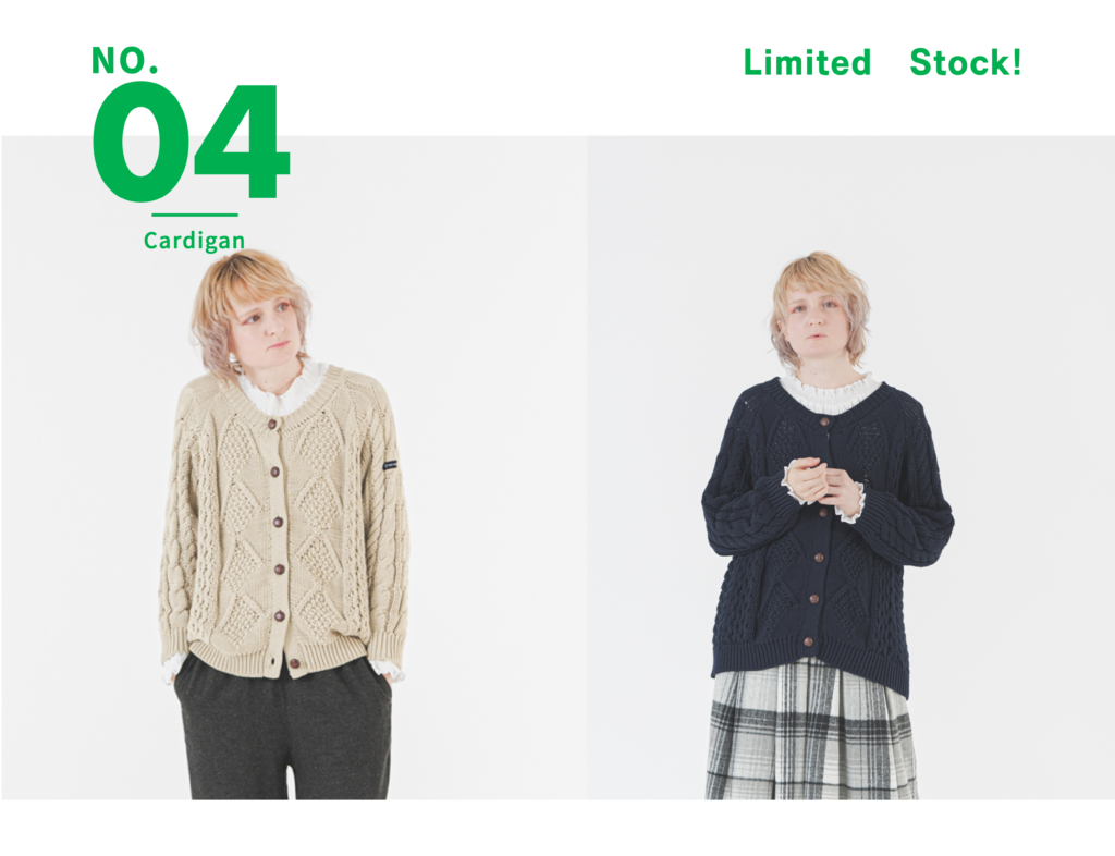 冬ニットの定番・ケーブルニットが、カーディガンデザインで登場。ほっこり暖かみのある編み目ながら、ボリュームが出すぎないバランスに仕上げ、アウターの中にも着やすい1枚です。身幅はゆったり、着丈はボトムスと合わせやすく、インナー見せの着こなしも楽しめます。カーディガン仕様なので、冬はもちろん春先の羽織りとしても活躍。チクチクしにくい素材感と、さりげないクルミボタンもポイントです。