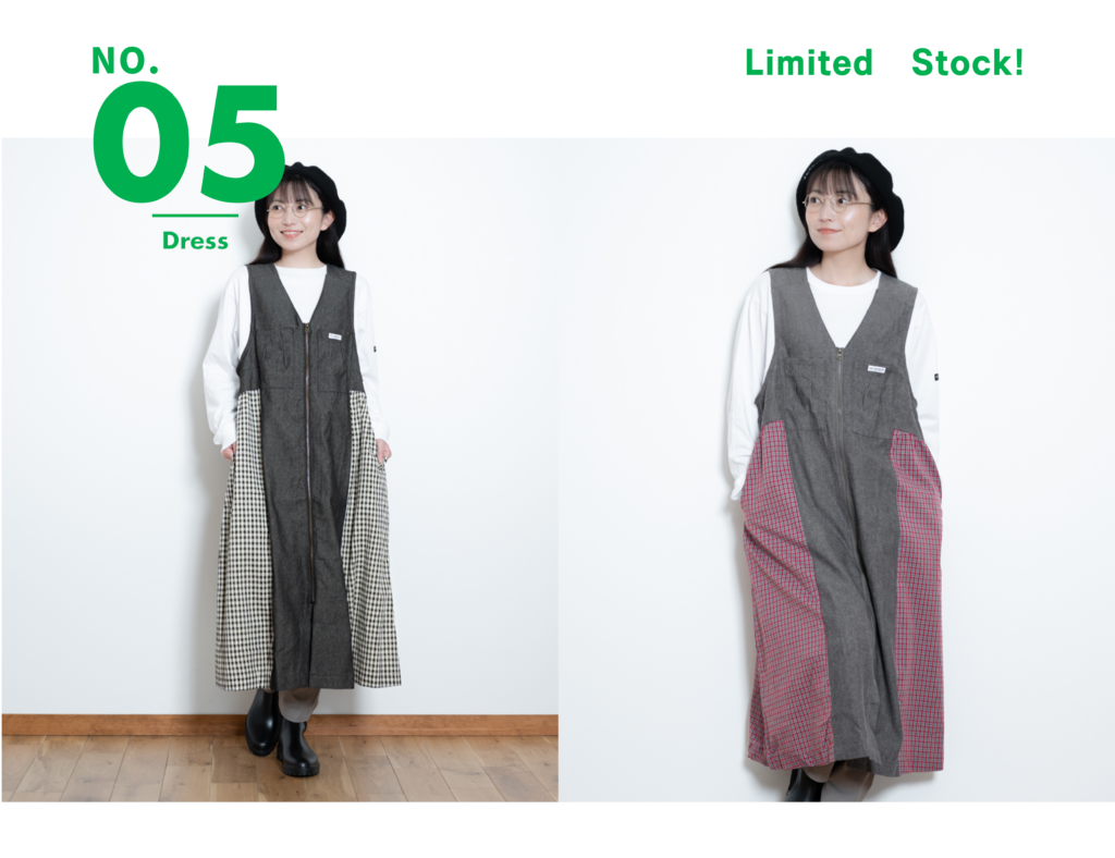 【オンライン限定】ロングジレとしても、ワンピースとしても着られる、スタイリングのアクセントになる1着!Vネックのジャンパースカートデザインをベースに、首元はすっきり見え。ニットやスウェット、Tシャツまで合わせやすいアーム設計で、華奢見えも叶います。フロントジップを開ければロングジレとしても着用でき、動きのある立体的なシルエットに。薄手のデニム生地とシャツ素材のチェック切替で、軽やかな着心地も魅力です。サイドからバックまで続くチェックデザインや、アンティーク調ジップなど細部までこだわったアイテム。