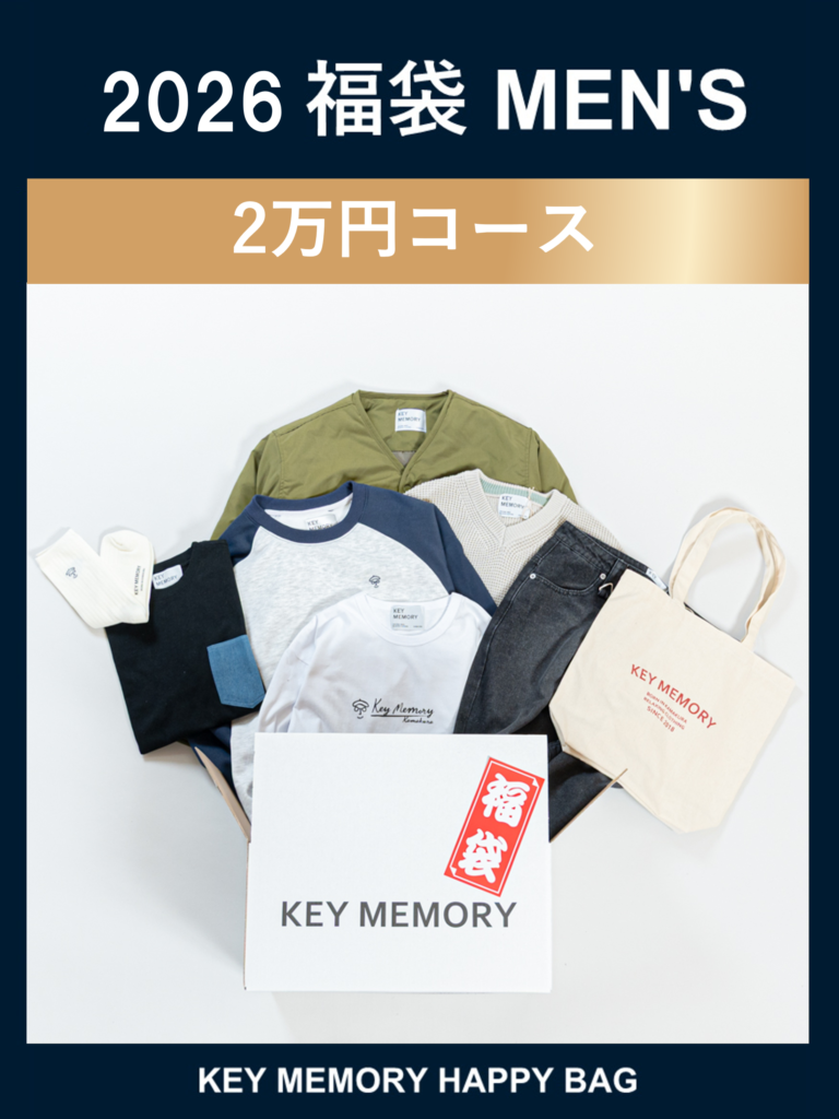 2026年福袋限定!メンズ福袋2万円コース確定で入っているアイテムは、先程紹介した「中綿ジャケット」に加えて、どんなコーディネートにも合わせやすい「ラグランスウェット」が確定で入っています!KEY MEMORY通常販売では未発売デザイン!福袋限定で、ラグランデザインの裏起毛スウェットをご用意致しました!アウターを羽織ると一見シンプルデザイン。定番スウェットが、ガラッと雰囲気の変える事ができるラグランスリーブ。色合いを合せやすく、多くの方にご愛用頂けるNAVY×杢ナチュラルグレーの配色です。リラックス感あるスウェットが一気にコーデの主役となります。身幅や肩回りもゆったりしており、着心地も抜群です。首元や袖口、裾のリブは硬く厚手過ぎないバランスです。さらに、裏起毛は大変滑らかな肌触りでストレスフリー。おうち時間にもぴったりの生地です。KEY MEMORYではユニセックスでお楽しみ頂けますのでお見逃しなくご覧下さいませ。