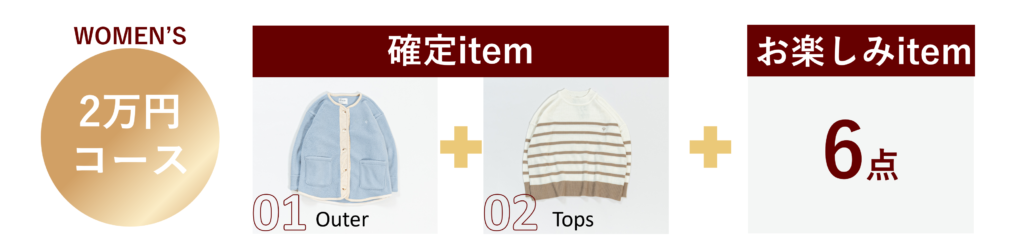 2026年福袋限定!レディース福袋2万円コース確定で入っているアイテムは、先程紹介した「ボアジャケット」に加えて、インナーにぜひ合わせていただきたい「ボーダーニット」が確定で入っています!KEY MEMORYで人気のボーダー。今回は全面にボーダーラインを入れず、さりげなく、すっきり見えする大人ボーダーデザインでご用意致しました。柔らかいBEIGEカラーのラインは、モノトーンでもカラーアイテムでもぴったり合わせやすい色合いを選んでおります。首元は白で明るさも出せるようなラインバランスです。袖口と裾部分はラインの幅を広げ、メリハリを付けました。ライトな厚みのニットを使用し、ボアジャケットとの素材感の違いを出しております。アクリル素材で軽く、編地もスッキリしております。サイズ感は、幅広いデザインのボトムスともバランスが取りやすく、すっきり見えするようなサイジングになっております。メンズ福袋アウターとのアースカラー合わせもピッタリですのでぜひ合わせてご覧下さいませ。