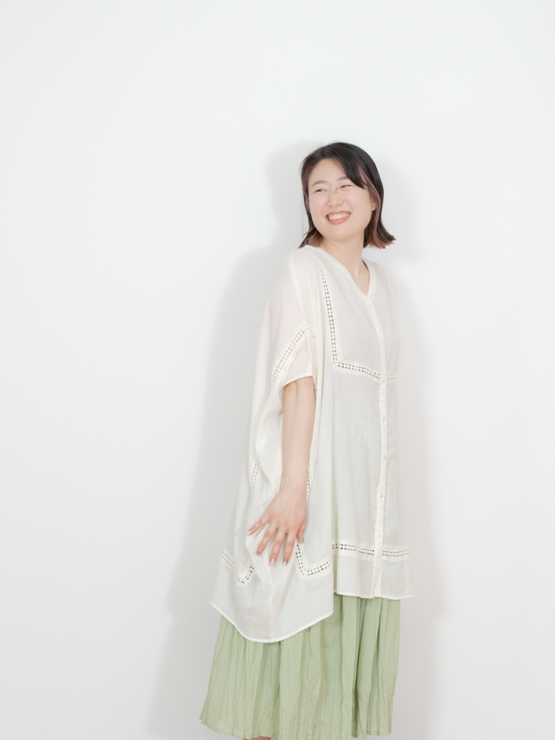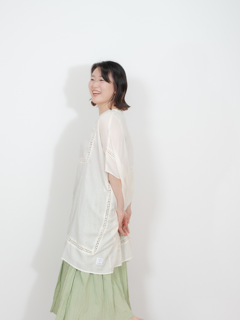 Box silhouette tunic NATURALを使用したコーディネート。
