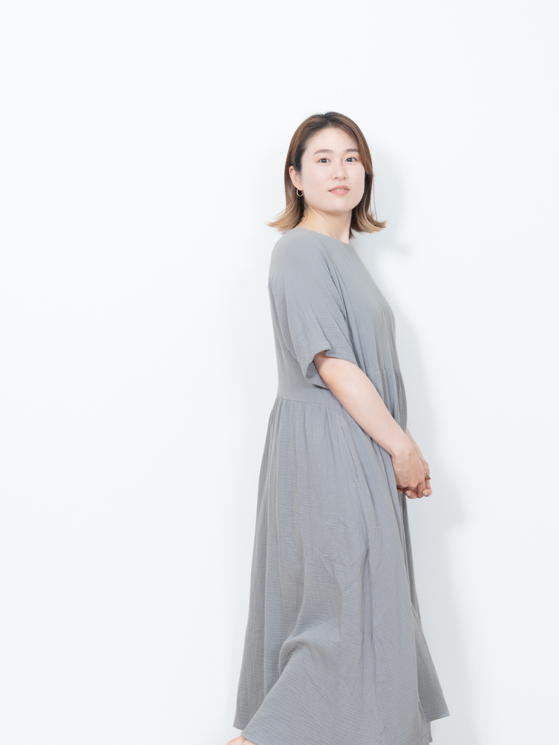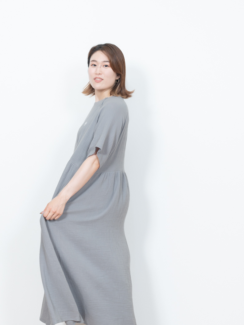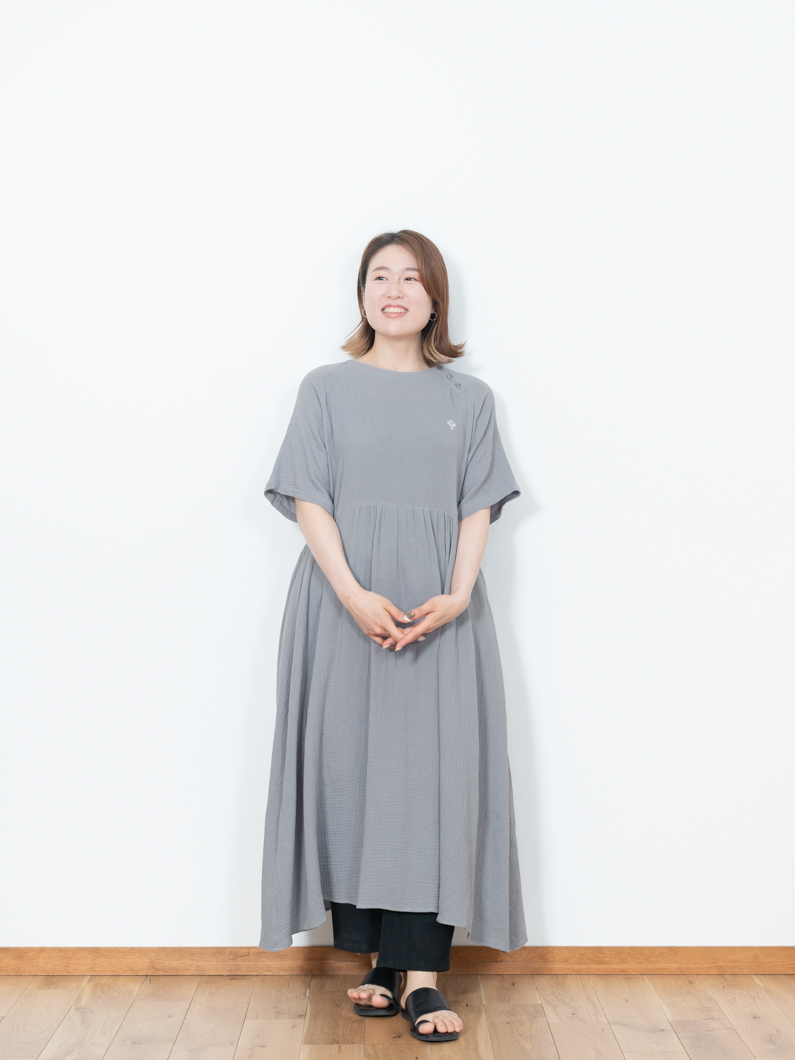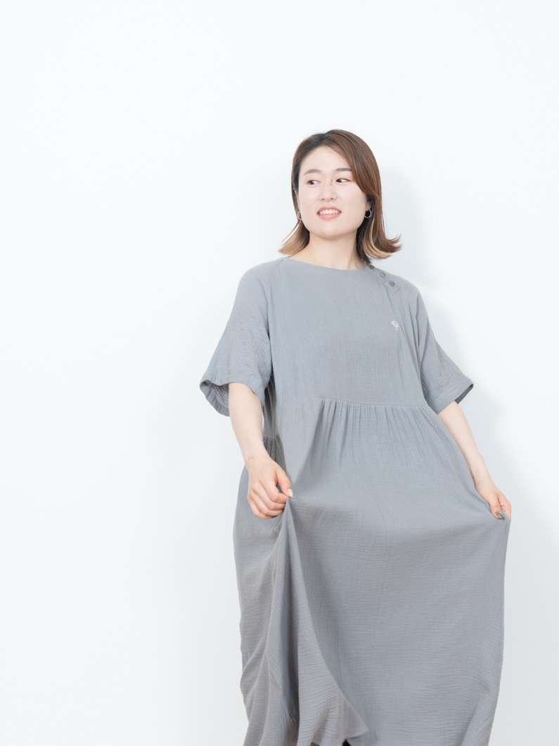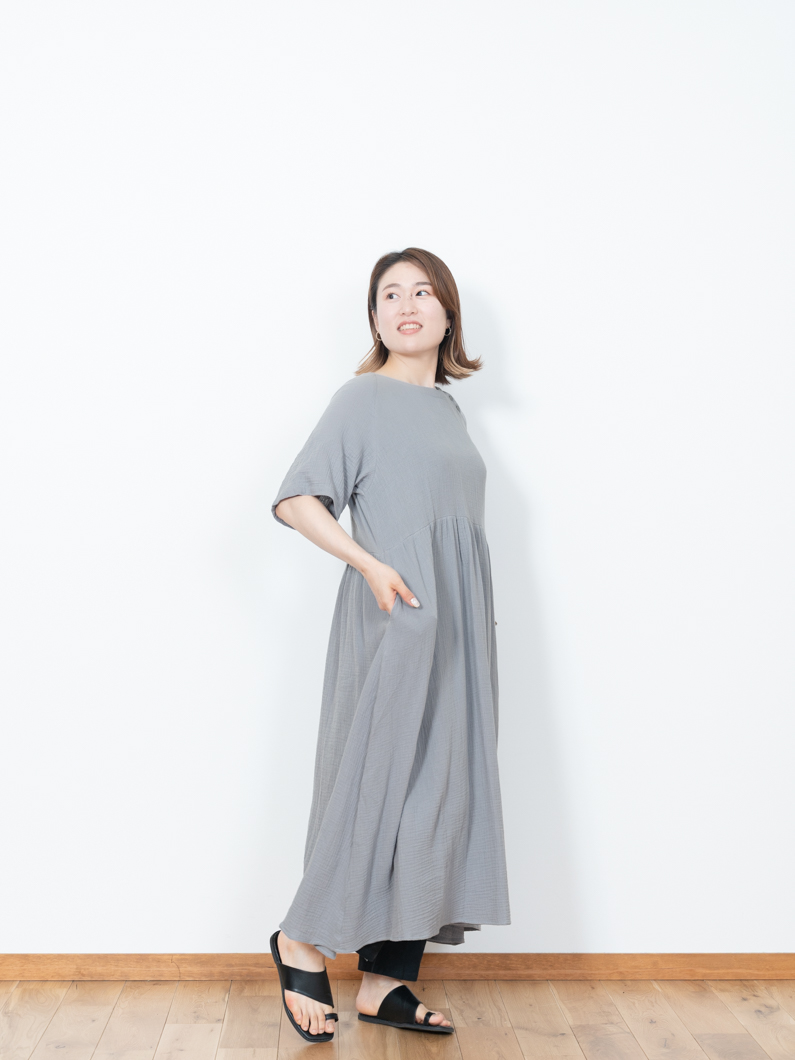 Double gauze dress BLUEGRAYを使用したコーディネート。