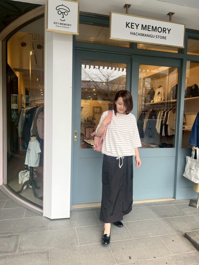Drawstring hem tee WH×PN を使用したコーディネート。 STAFF じゅん 164cm