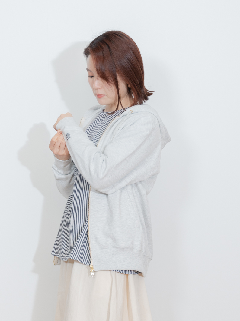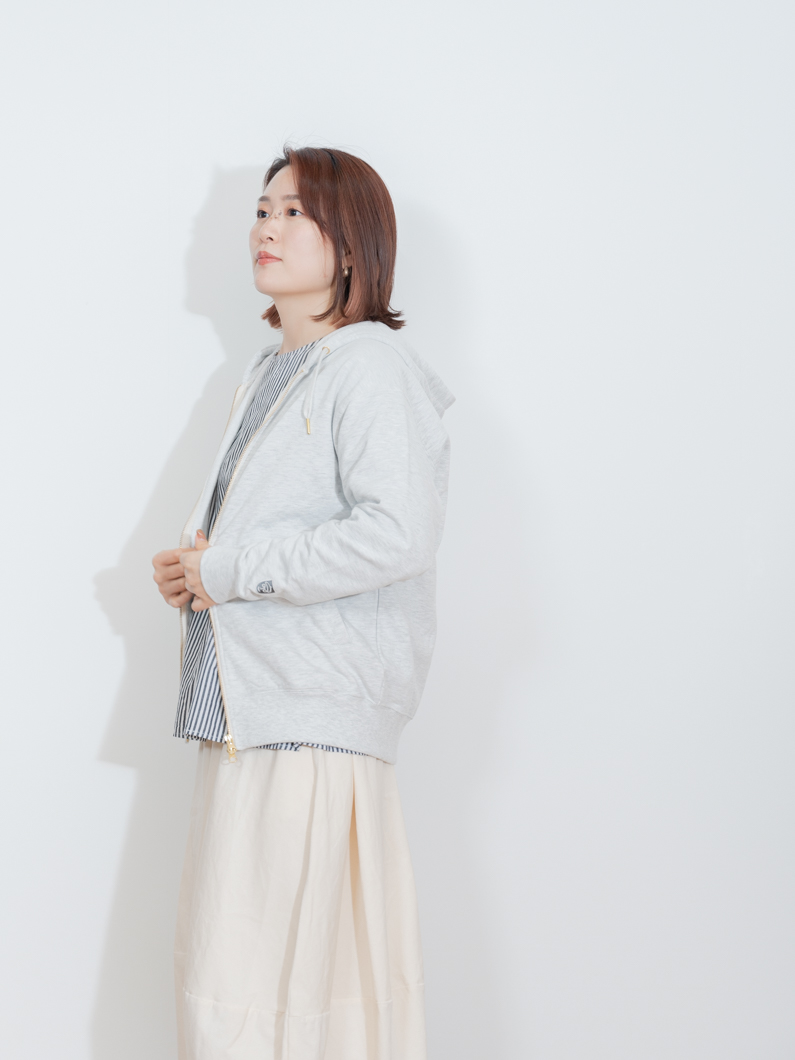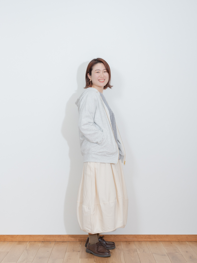 Soft pile zip hoodie NATURALを使用したコーディネート。