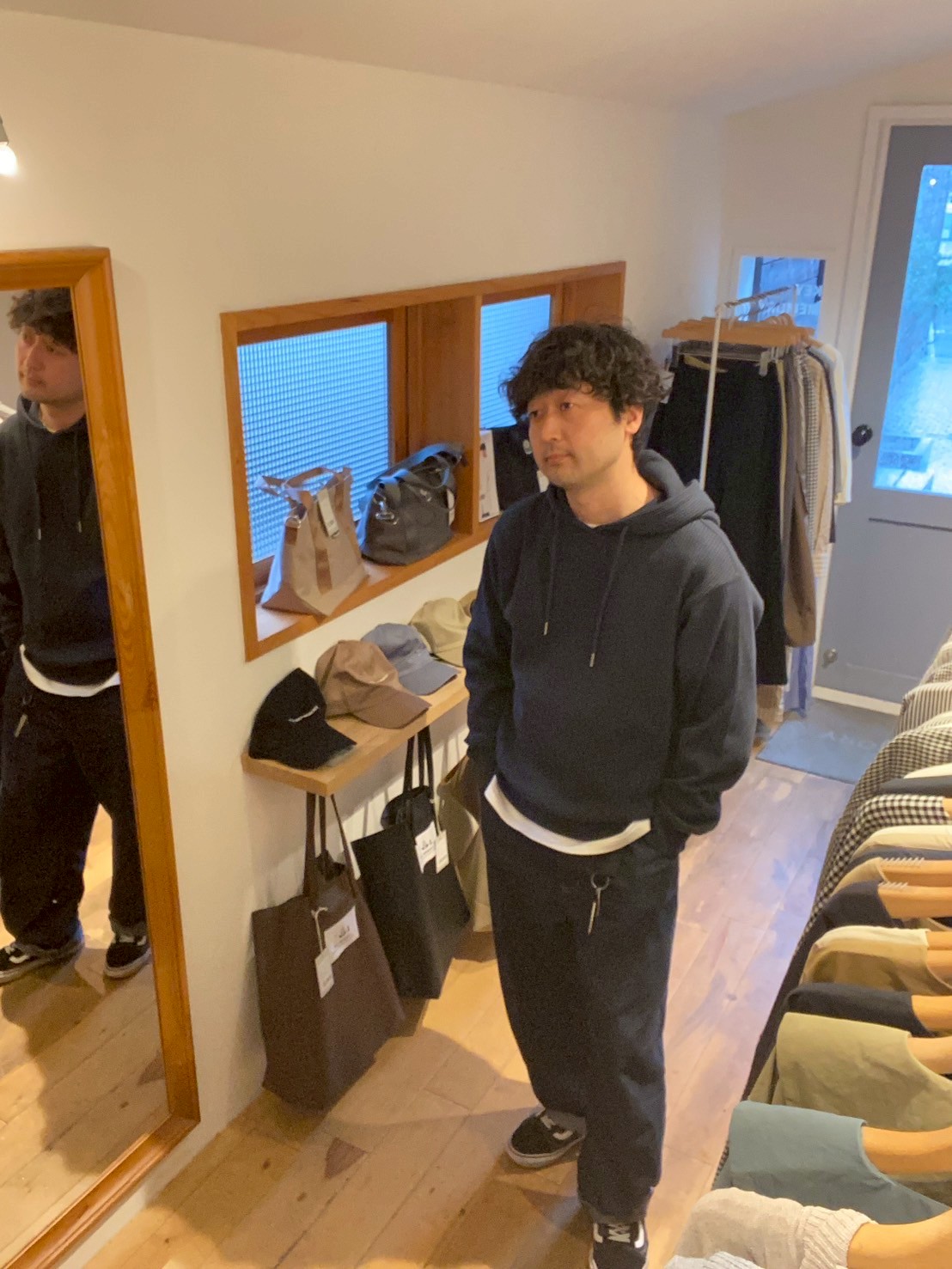Waffle hoodie NAVY を使用したコーディネート。