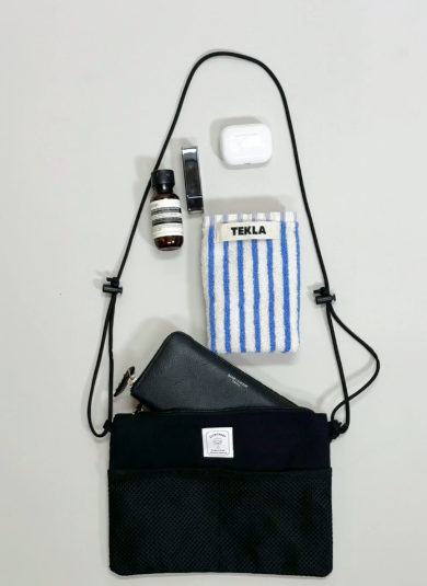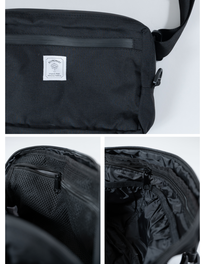 ジップ付きのメイン部分/正面にメッシュタイプのポケット2か所/背面にファスナー付きのポケット 計4か所に入れられるので整理はばっちり。Bag in Bagにもおすすめです◎