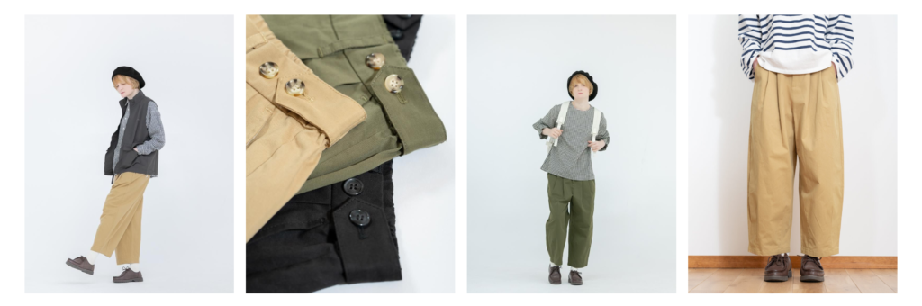 背面ゴムとボタンでウエスト調整可能にアップデート◎