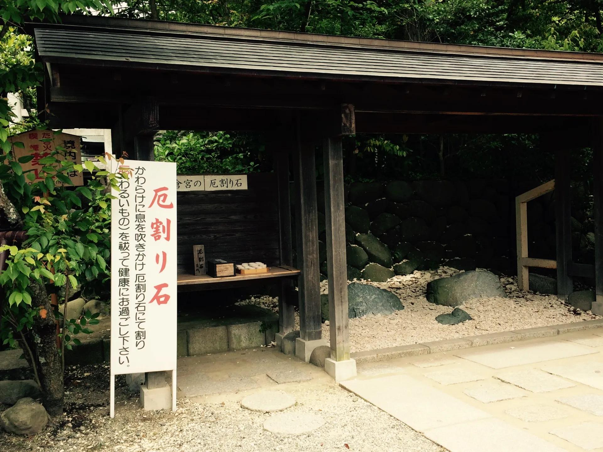 鎌倉宮では、厄を割って悪運を断ち切る“厄割り石”というユニークな厄除けを楽しめます。