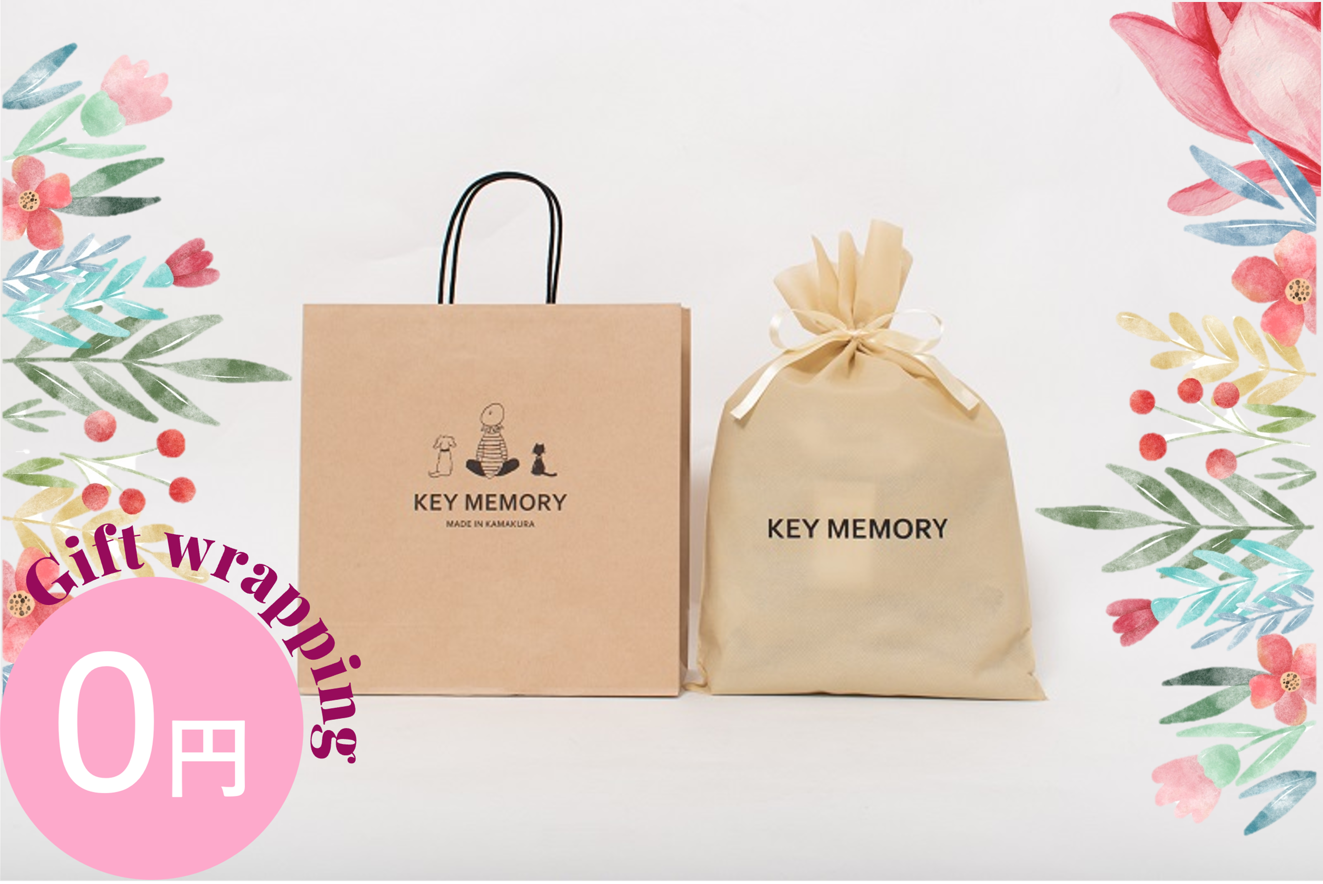 KEY MEMORY Online Storeでは、ギフトラッピングを1ラッピングにつき通常有料【150円(税抜)】にて承っておりますが、5/10までの期間限定でラッピング無料キャンペーンを実施しております◎ギフトバッグの大きさはご購入商品により、当店にて判断させていただきます。予めご了承くださいますようよろしくお願いいたします。