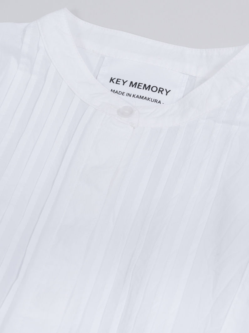 KEYMEMORYから登場したブラウスも、シンプルなデザインにピンタックが映えてきれいめなコーディネートに合わせやすいデザインになっています。