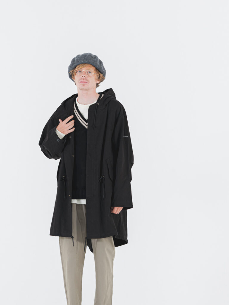 ミリタリーの名品「M-51」をベースに、フード一体型の本格仕様ながら、余計な装飾を削ぎ落としたクリーンなデザインに。