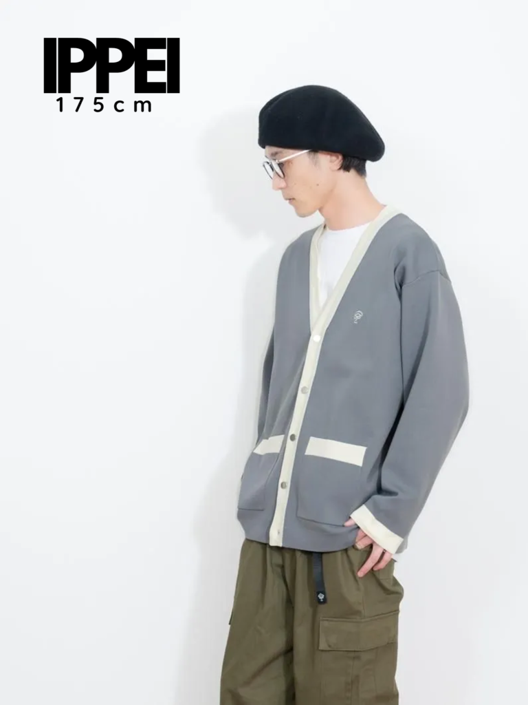 Bicolor knit cardiganはオンオフどちらでも合わせやすい万能アイテム。