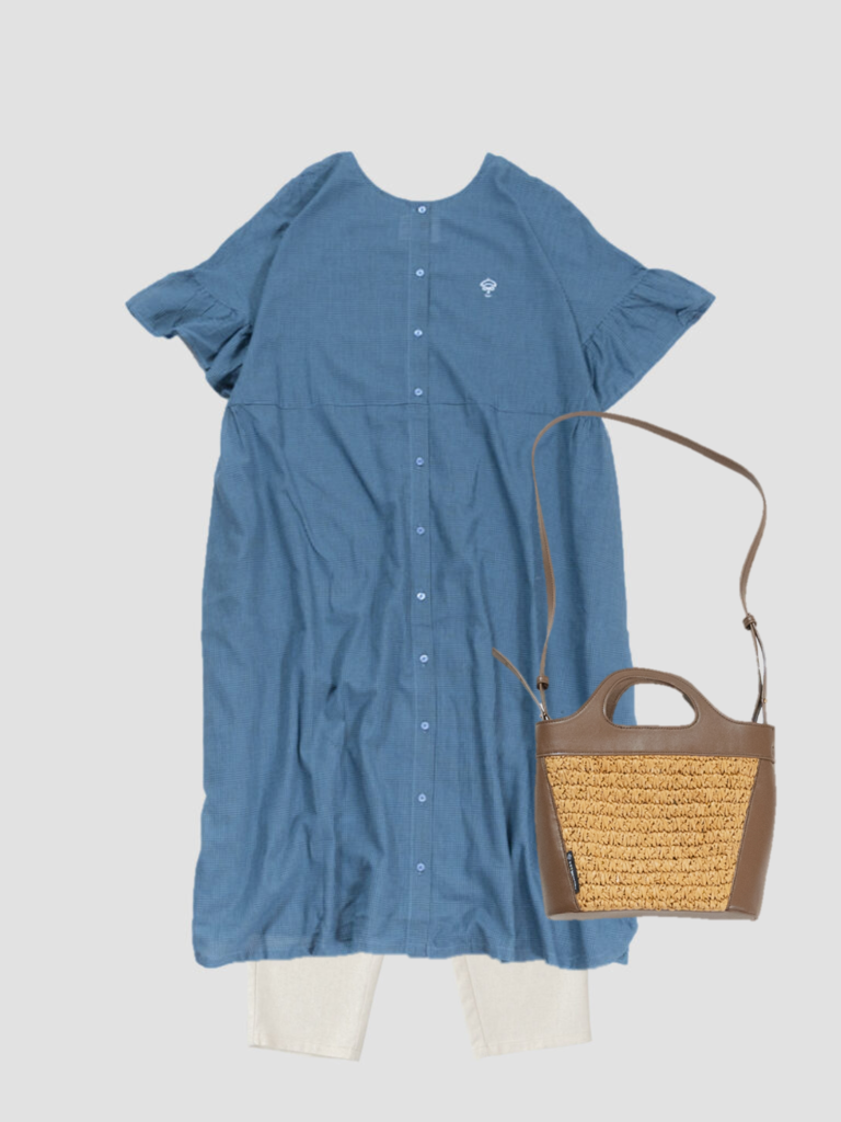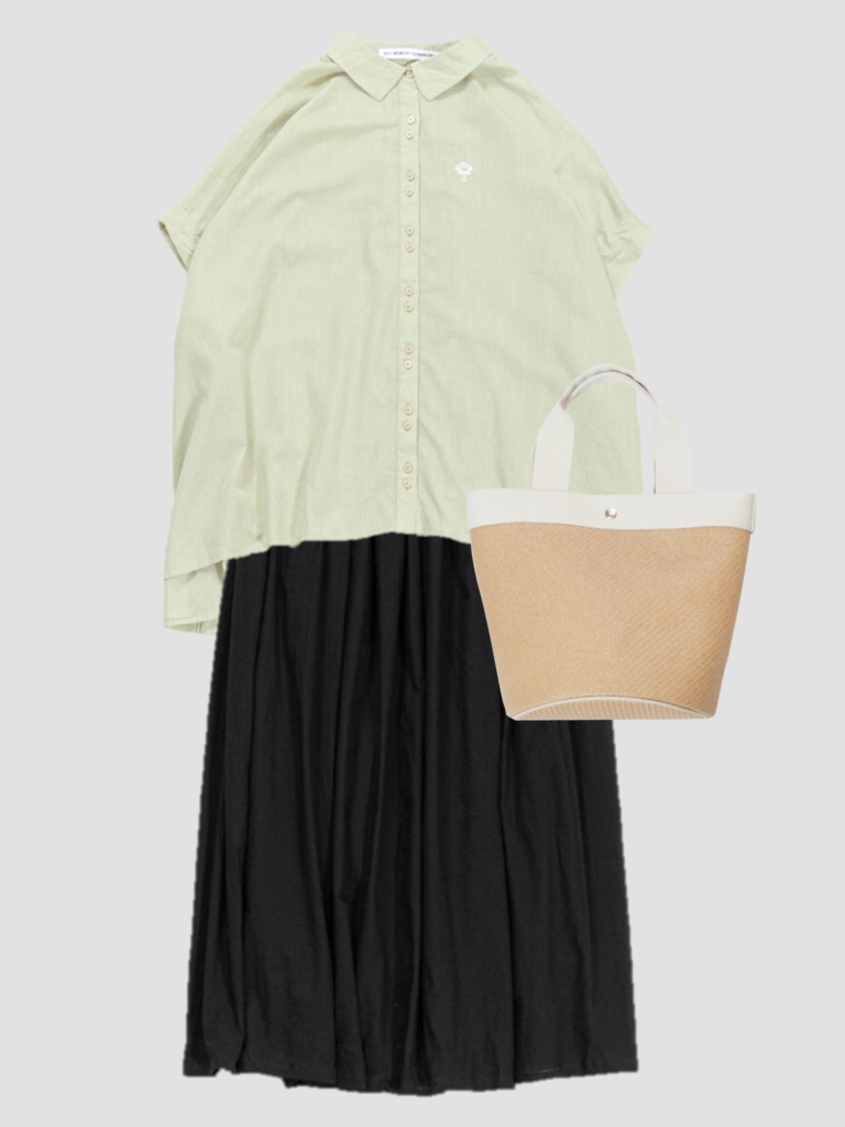 歩きやすさを重視しつつ、上品さも忘れないコーデ。軽やかな素材で蒸し暑さを防ぎながら、街並みに馴染む落ち着いた色合いがポイントです。