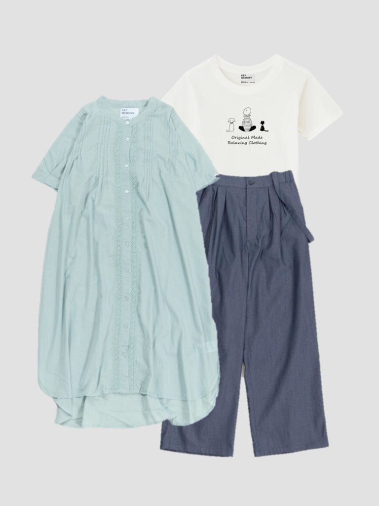 涼しげな素材とゆったりしたシルエットで、潮風の中でもリラックスして快適に過ごせるスタイル。動きやすさもありながら、爽やかな印象を与えます。