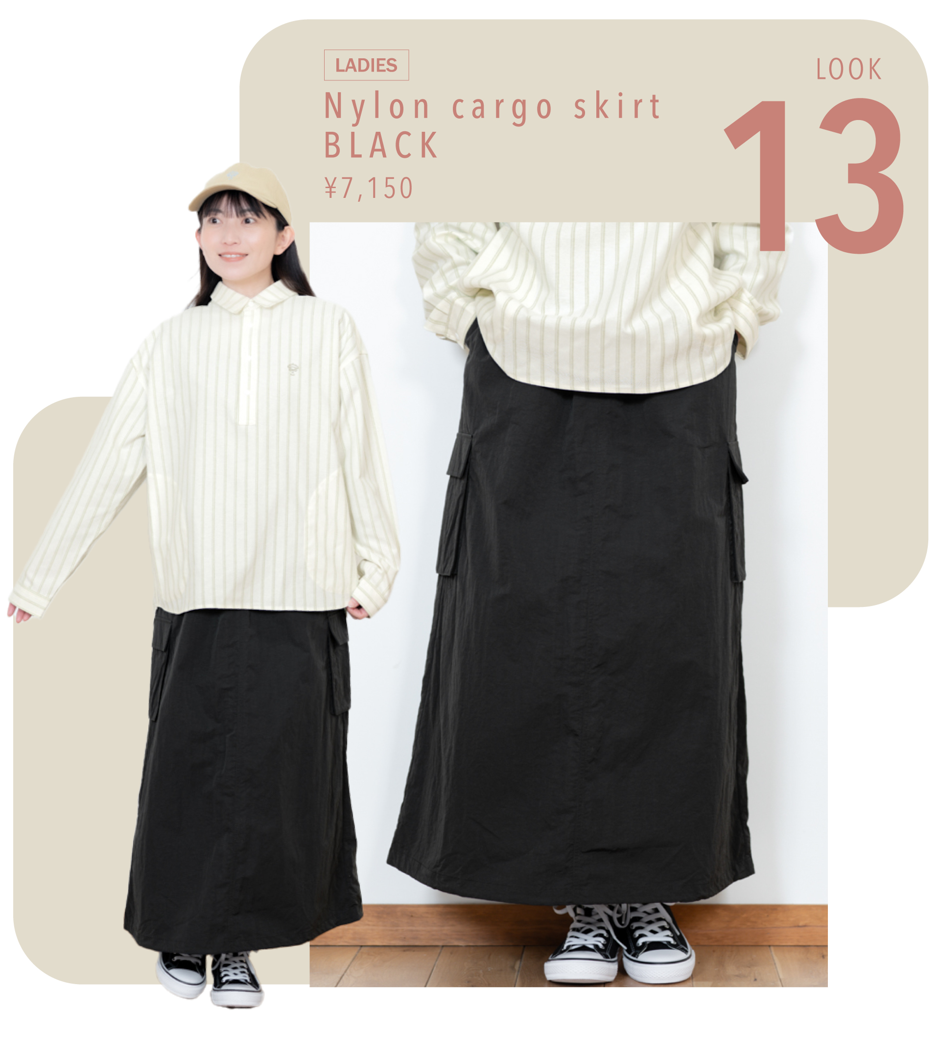 軽やかなナイロンカーゴスカート。