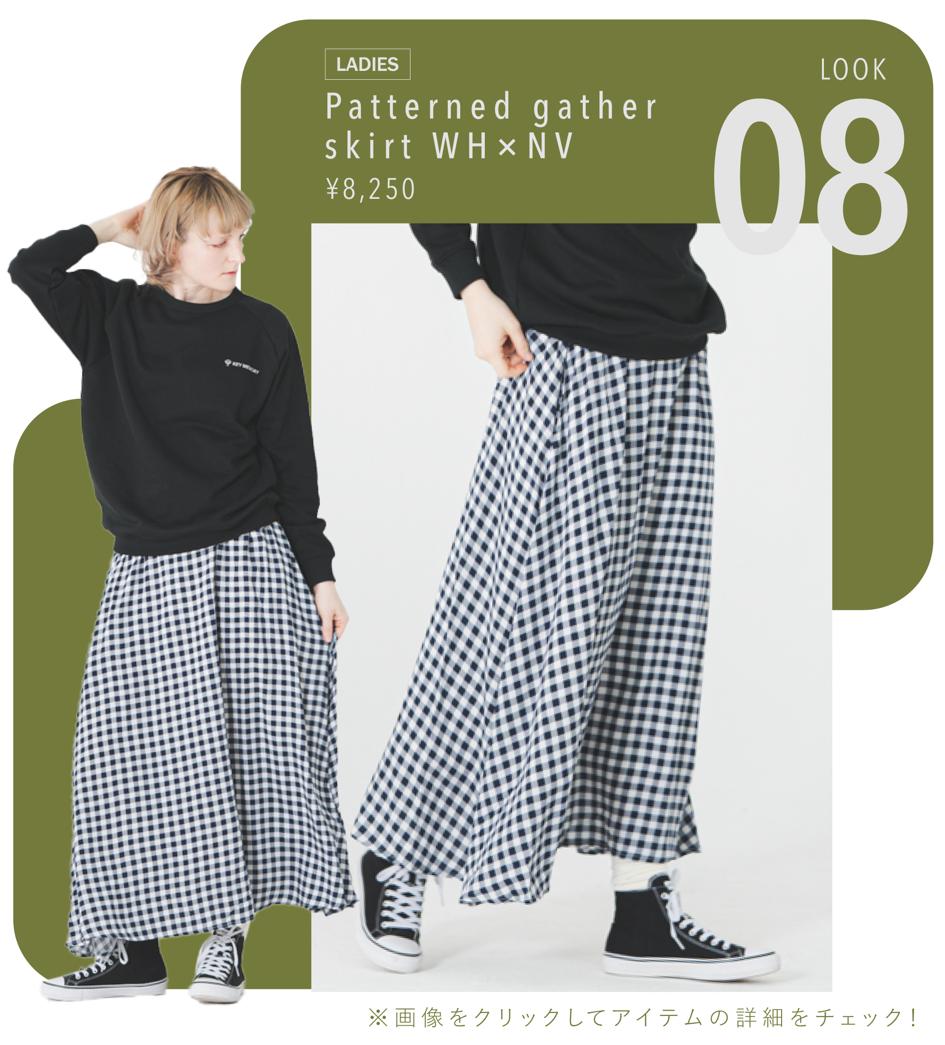 ふわりと広がるパターンギャザースカート。