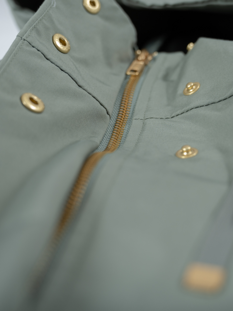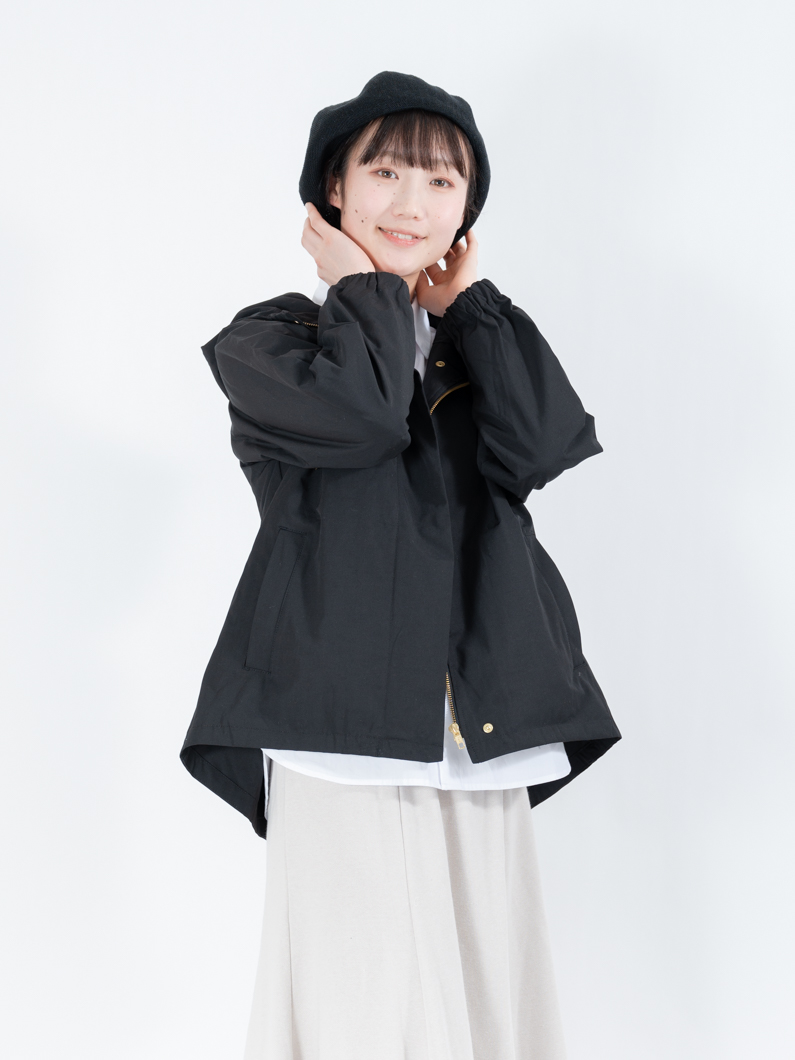 ゴールドの金具やドット釦もさり気ないアクセント。