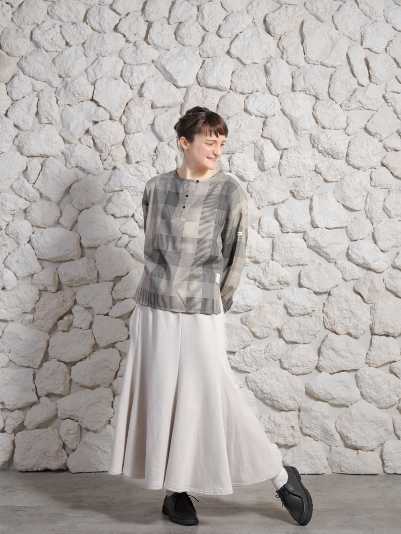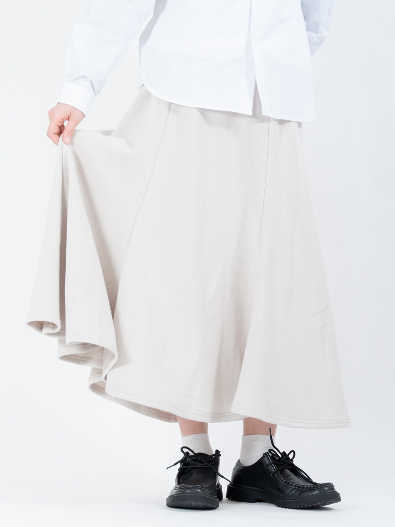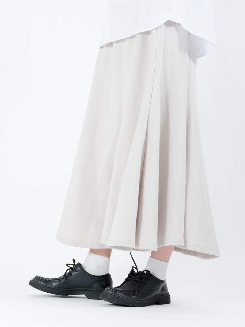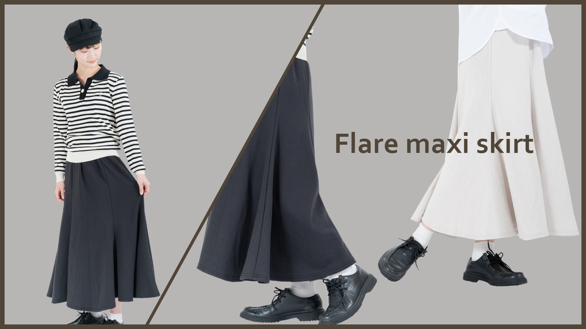 Aラインで出来た裾にかけて広がるフレアスカート。