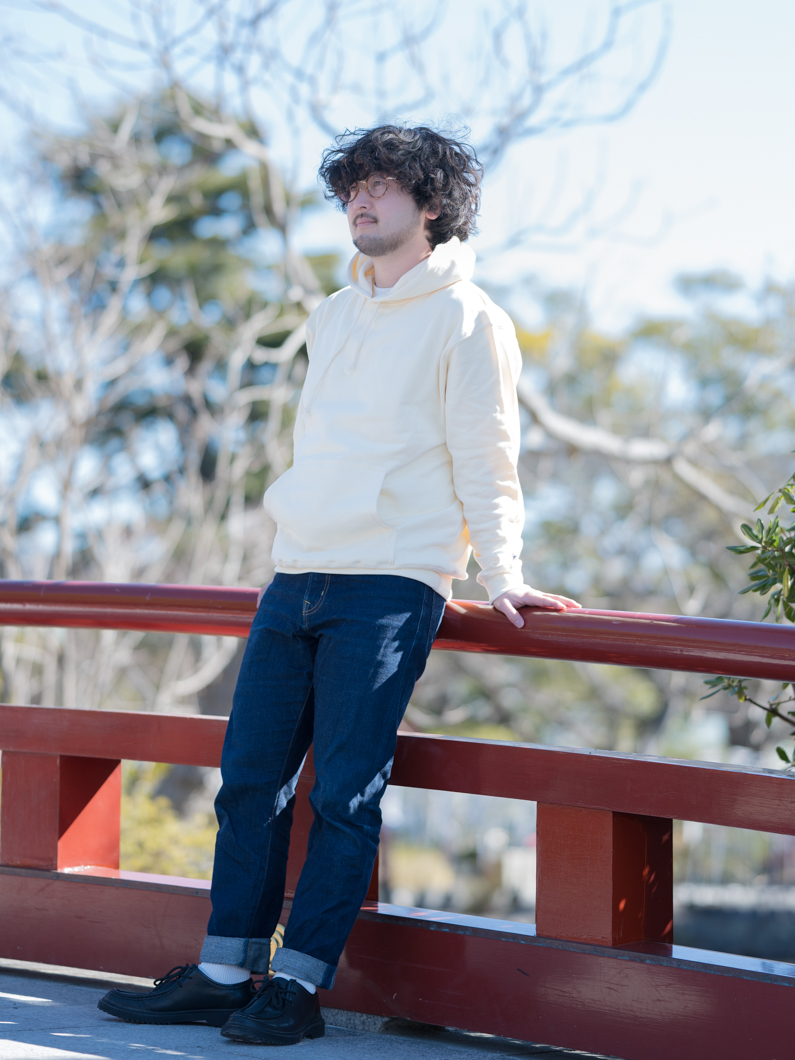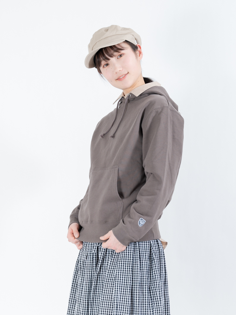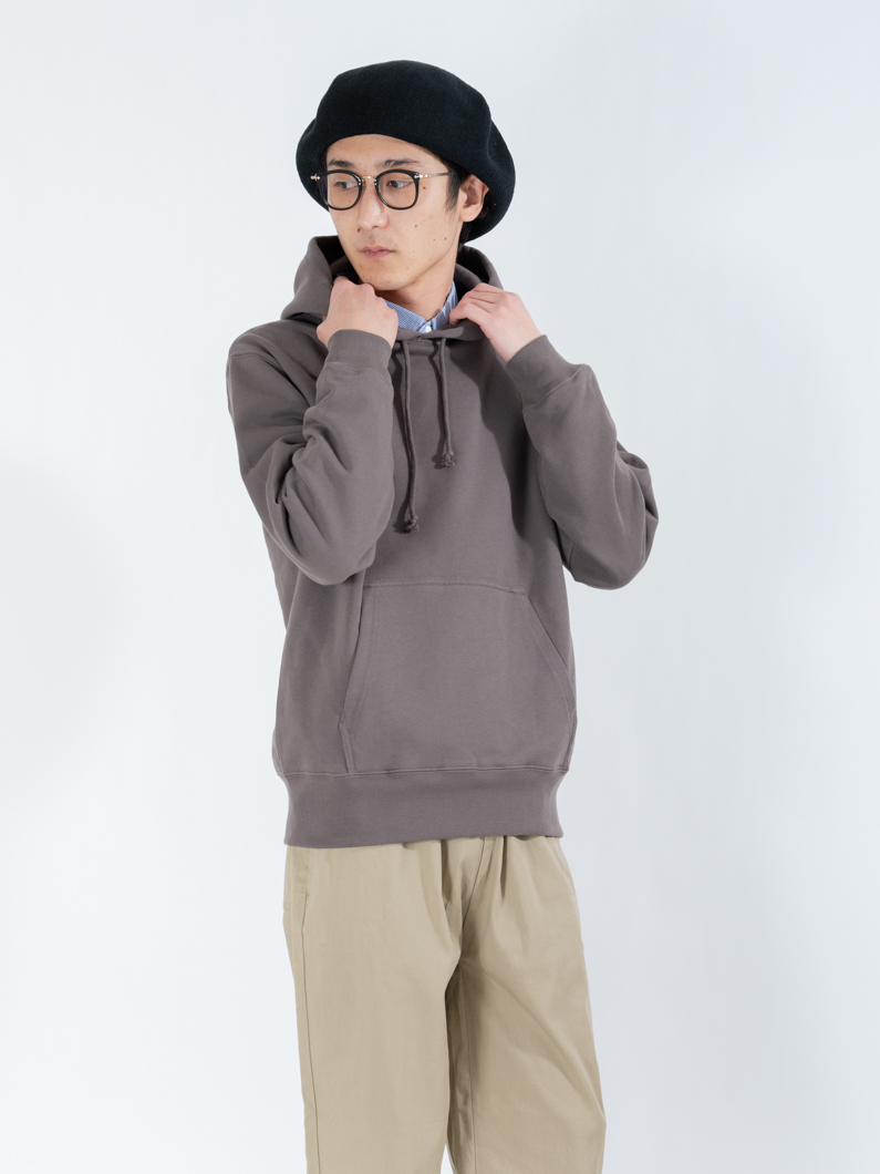 やや厚みのある裏パイル生地を使ったパーカー。