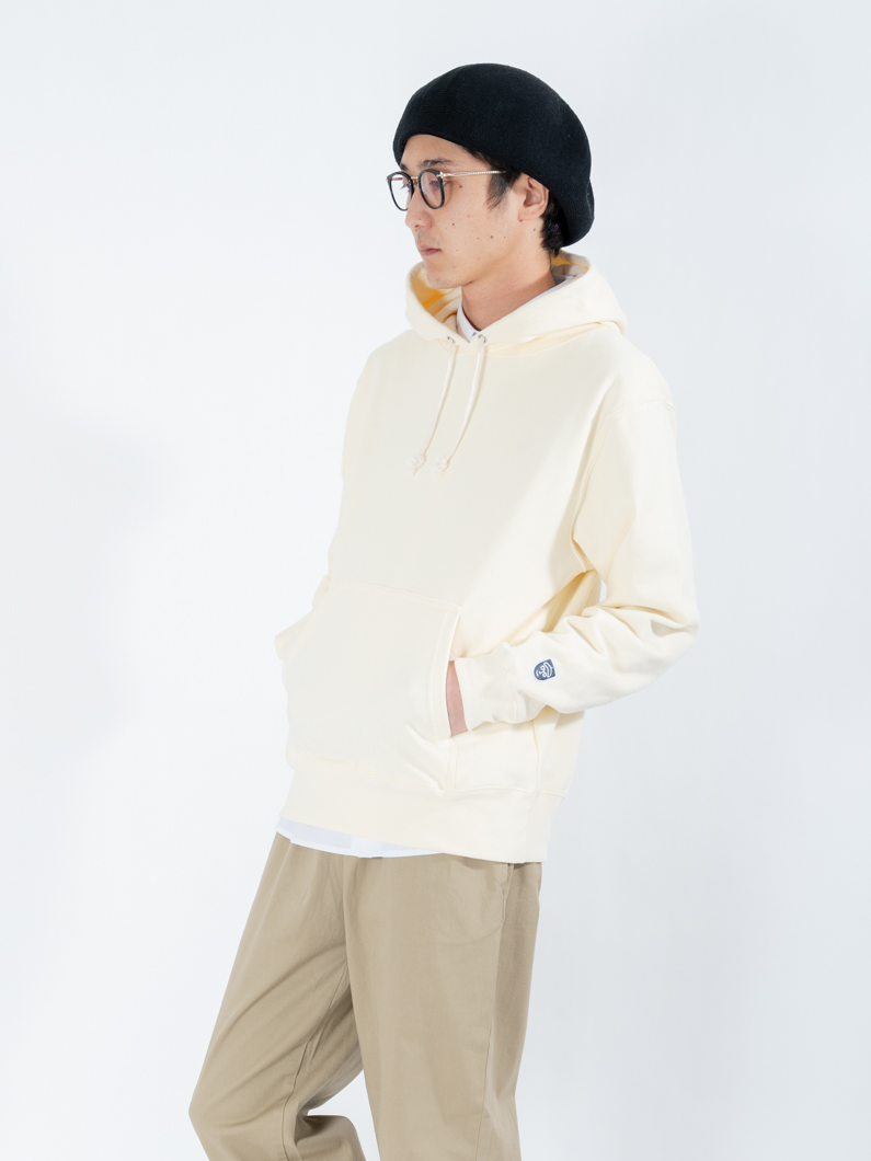 やや厚みのある裏パイル生地を使ったパーカー。