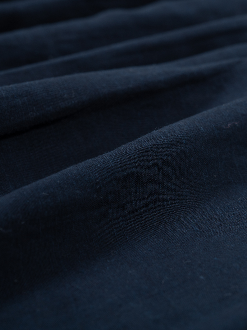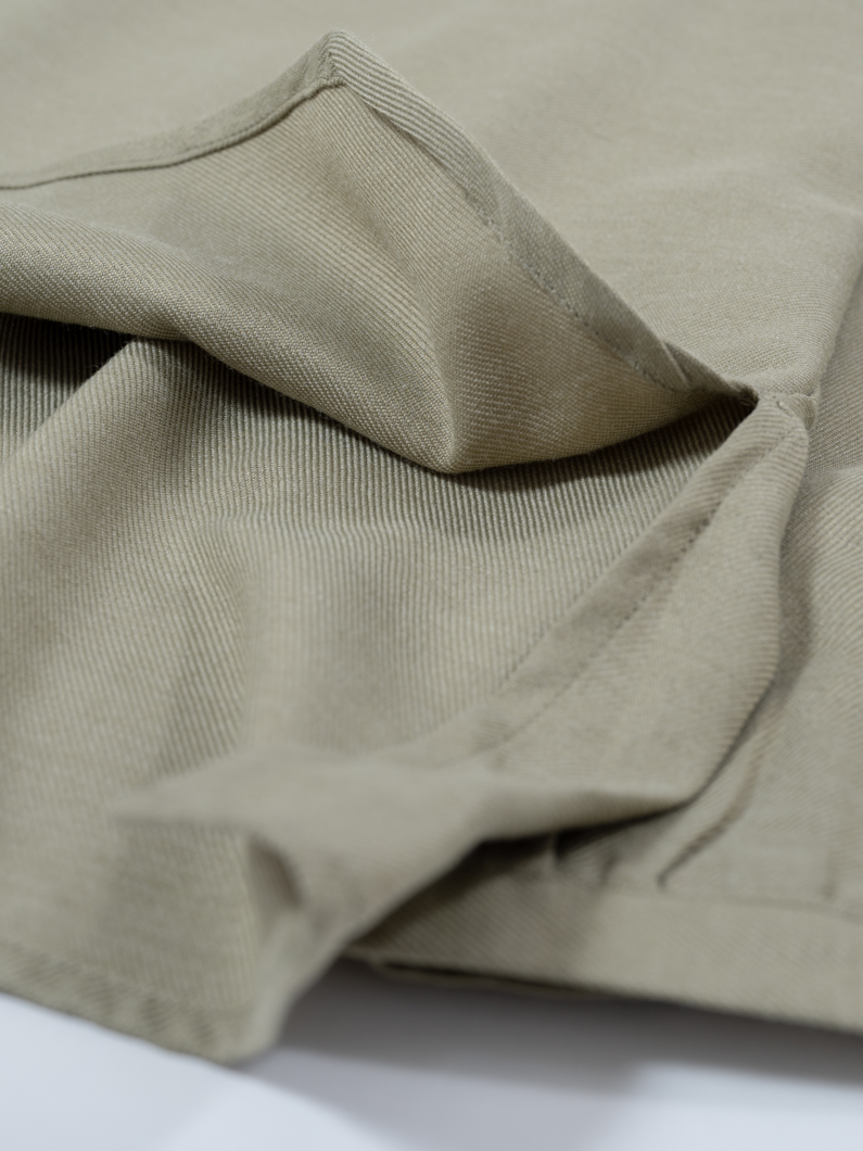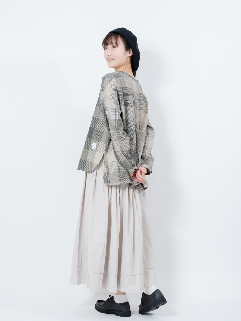 柔らかなノーカラーシャツ。
