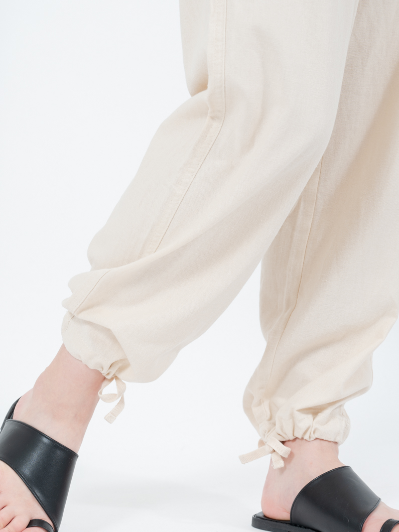 裾のヒモを絞れば、ジョガーパンツのような