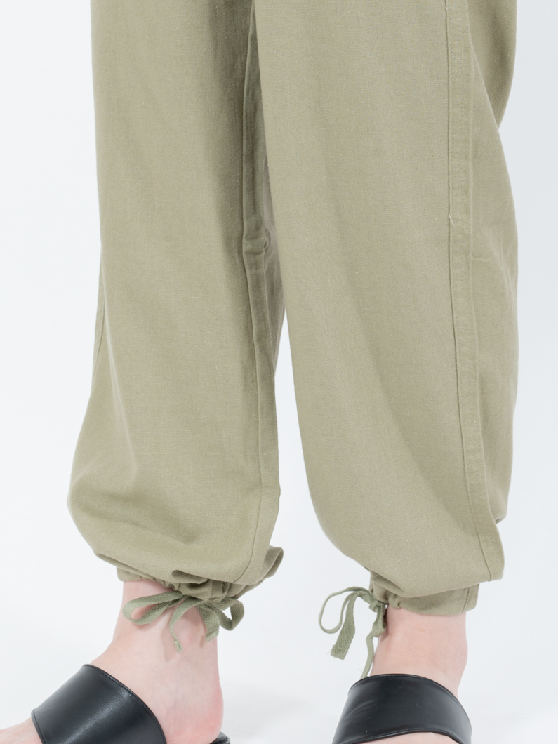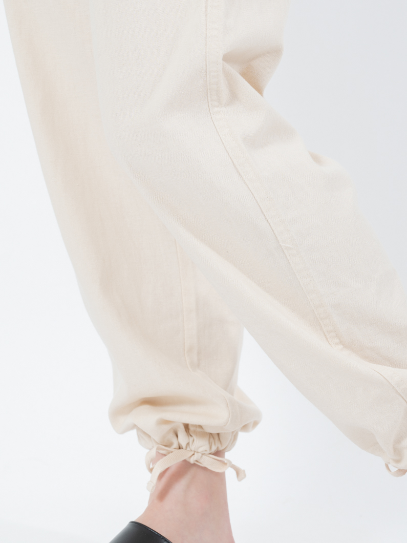 裾のヒモを絞れば、ジョガーパンツのような