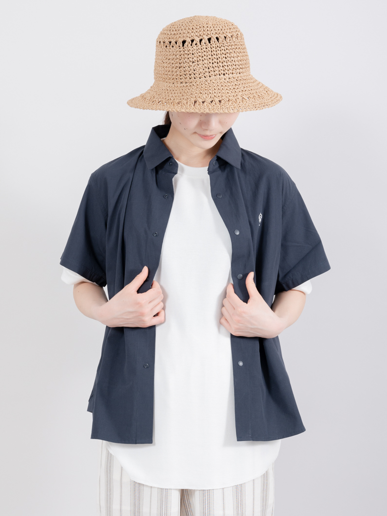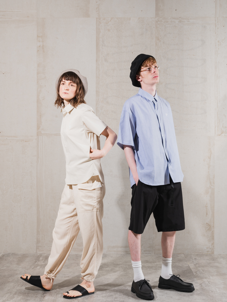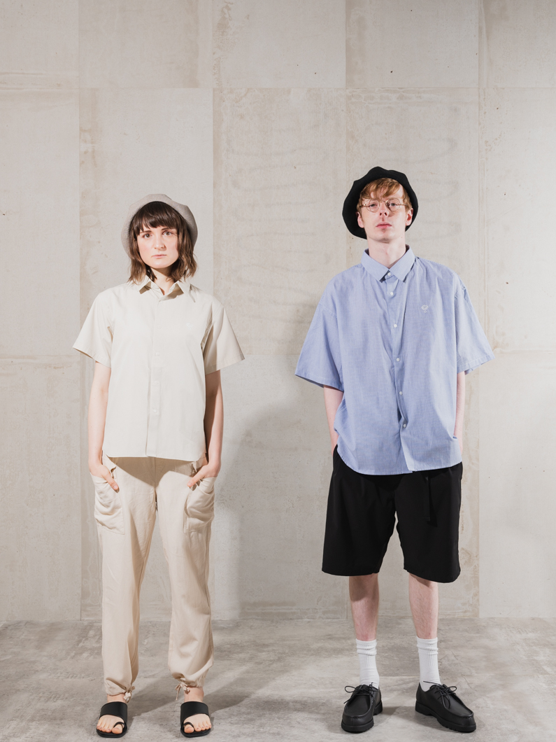 両袖にポケットが配された半袖シャツでのユニセックス展開で