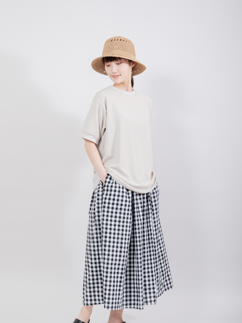 首元は着回しのしやすいクルーネックで
