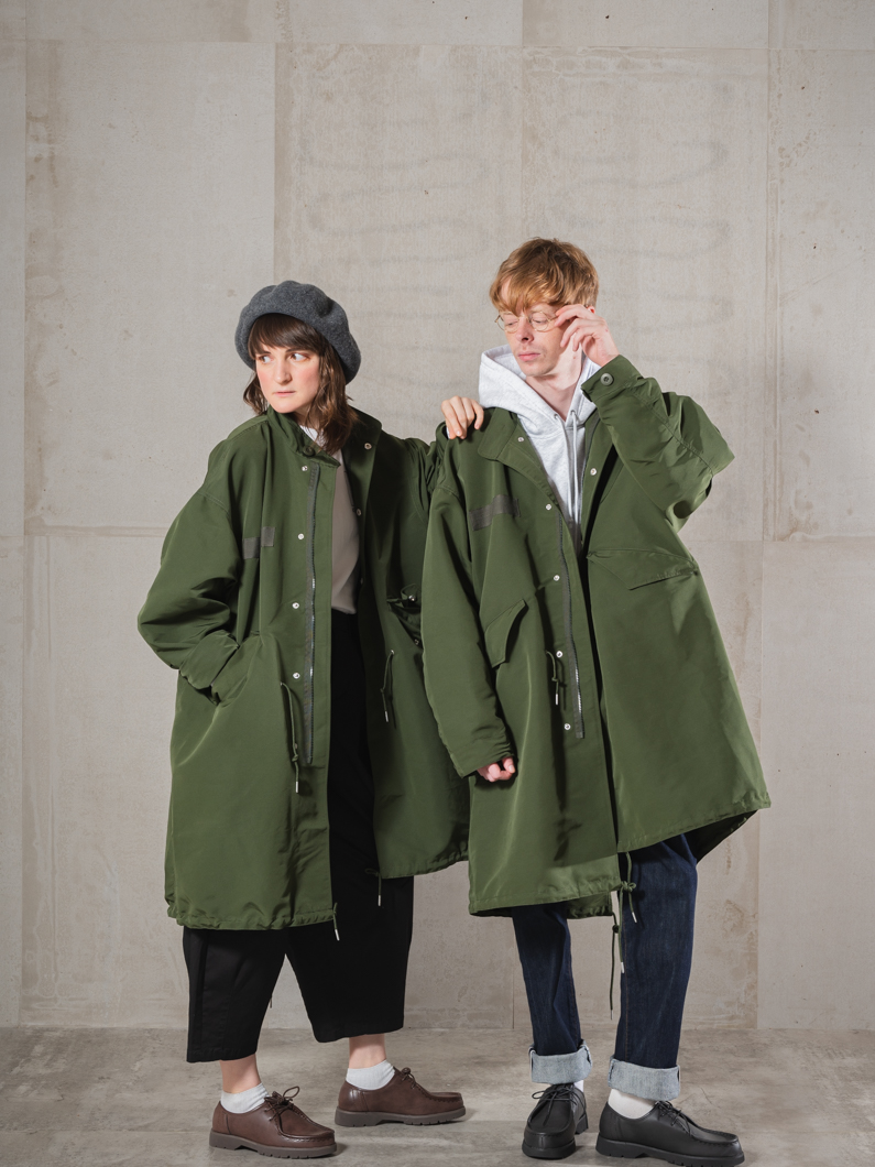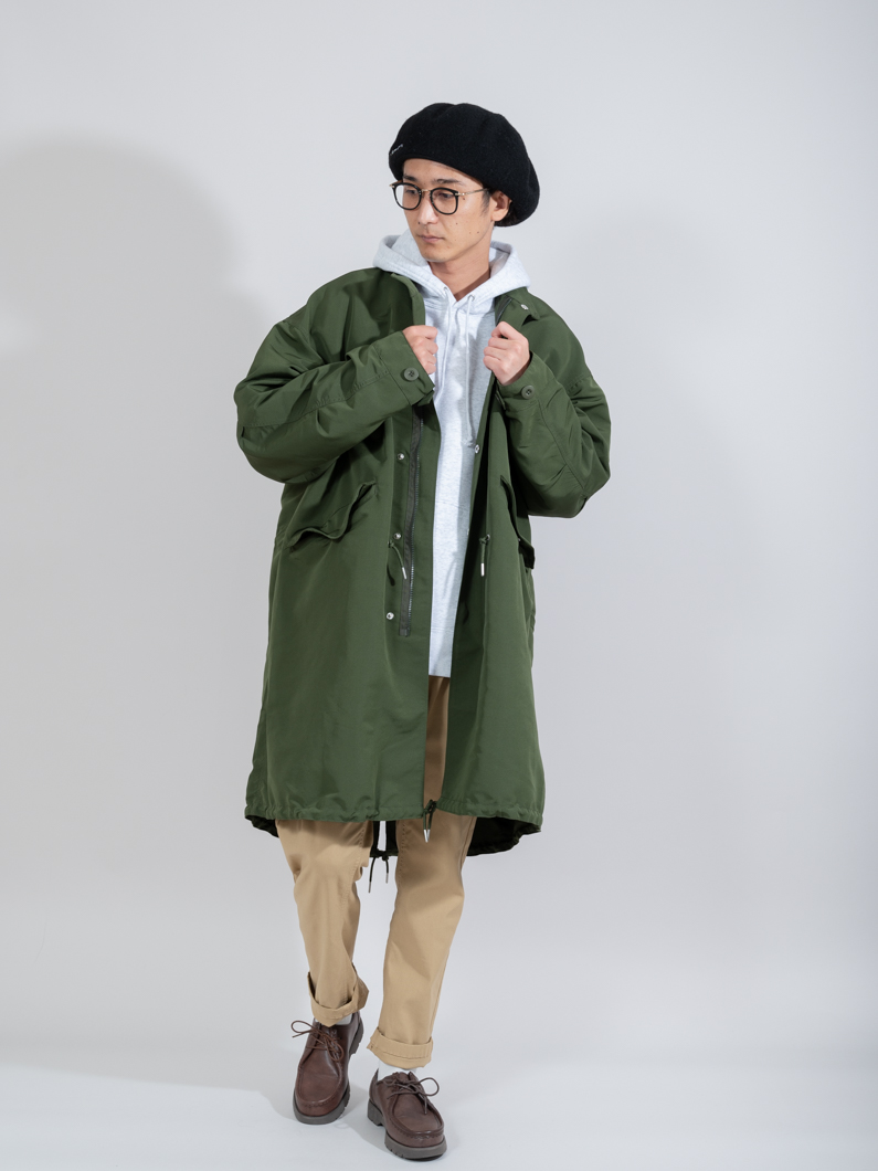 型はオリジナルのM-65 Parkaの雰囲気を残しつつ、
