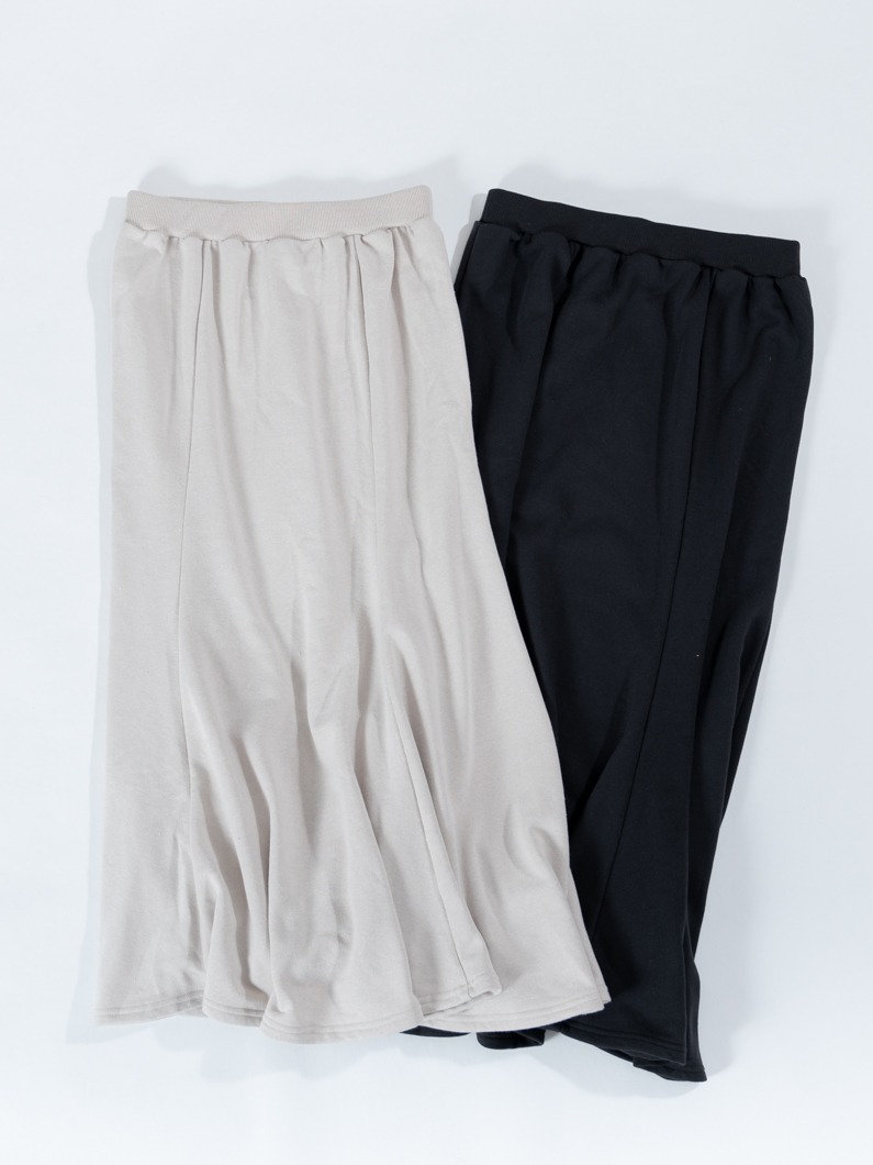 柔らかく伸縮性もあり動きやすい、スウェット生地のマキシスカート。
