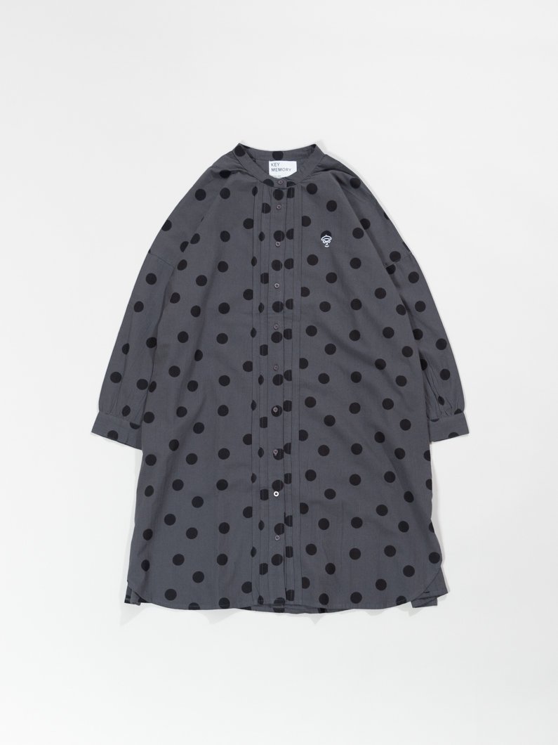 2つ目にご紹介するのは、キーメモリーでは珍しいドット柄のシャツワンピース。