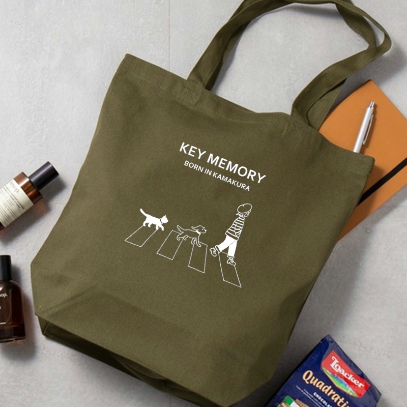 八木橋百貨店ポップアップのノベルティは、KEYMEMORYオリジナルイラストトートバッグです!丈夫なコットン生地を使用しており、普段使いにも最適なトートバッグ。イラストはノベルティオリジナルのイラストです。