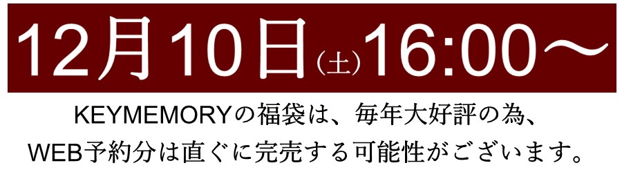 こちらも毎年恒例!キーメモリーの公式インスタグラムアカウントで、インスタライブ2023福袋予約販売直前スペシャルを、2022年12月10日14:00~配信いたします!インスタライブ内では、福袋の確定目玉アイテムのご紹介や、中身の内容などをコッソリご紹介!是非お楽しみに!