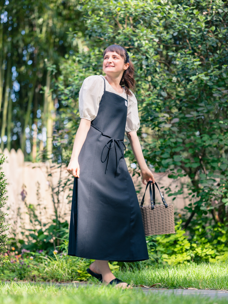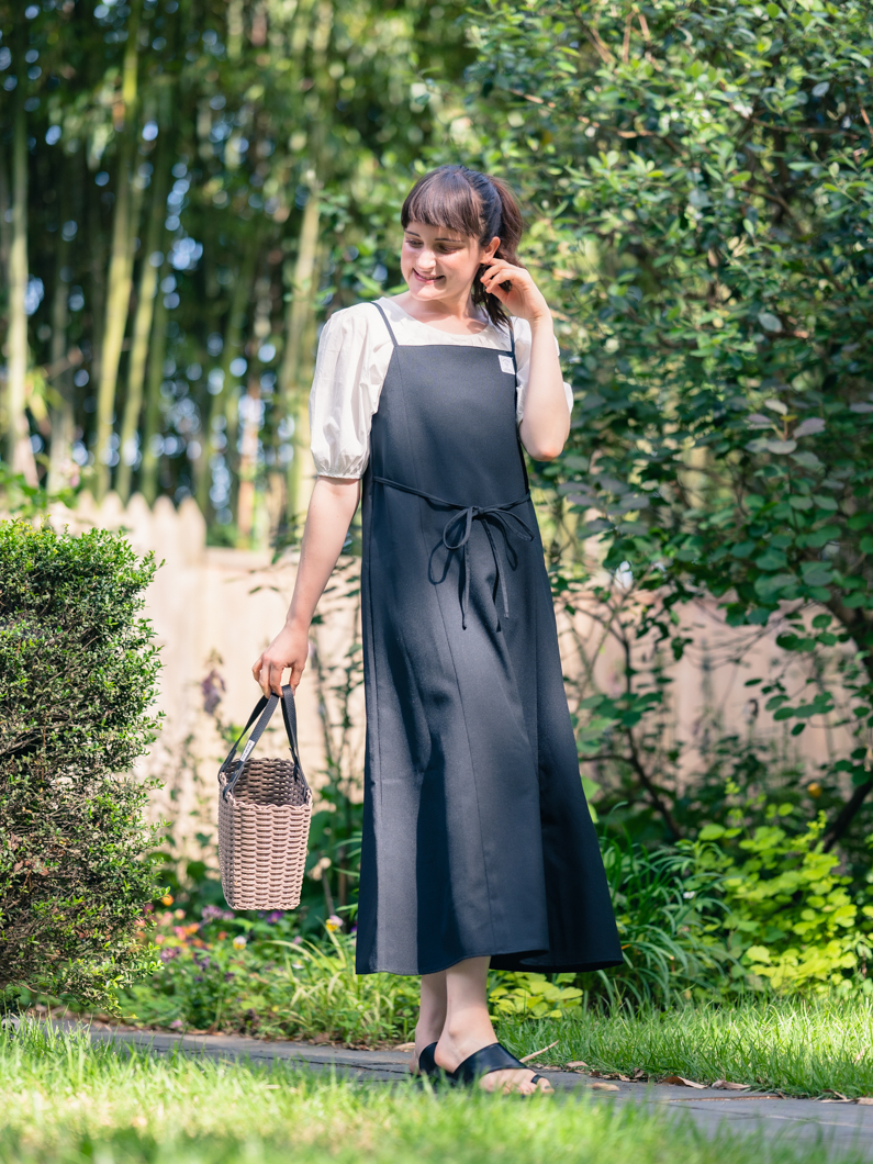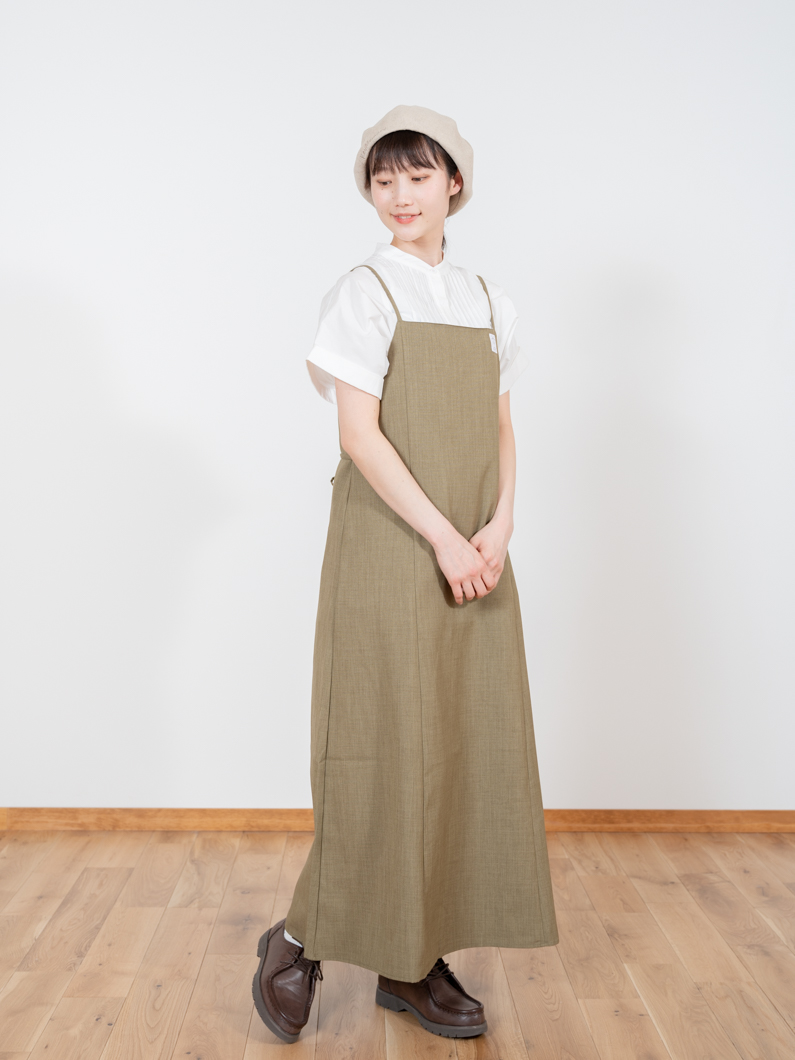 少しフレアなシルエットで着用できるワンピースです