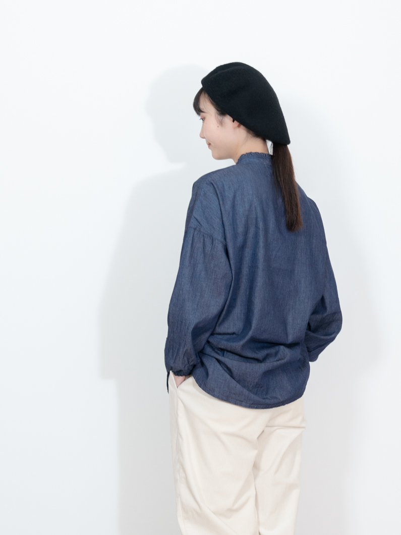 Denim frill collar blouse
