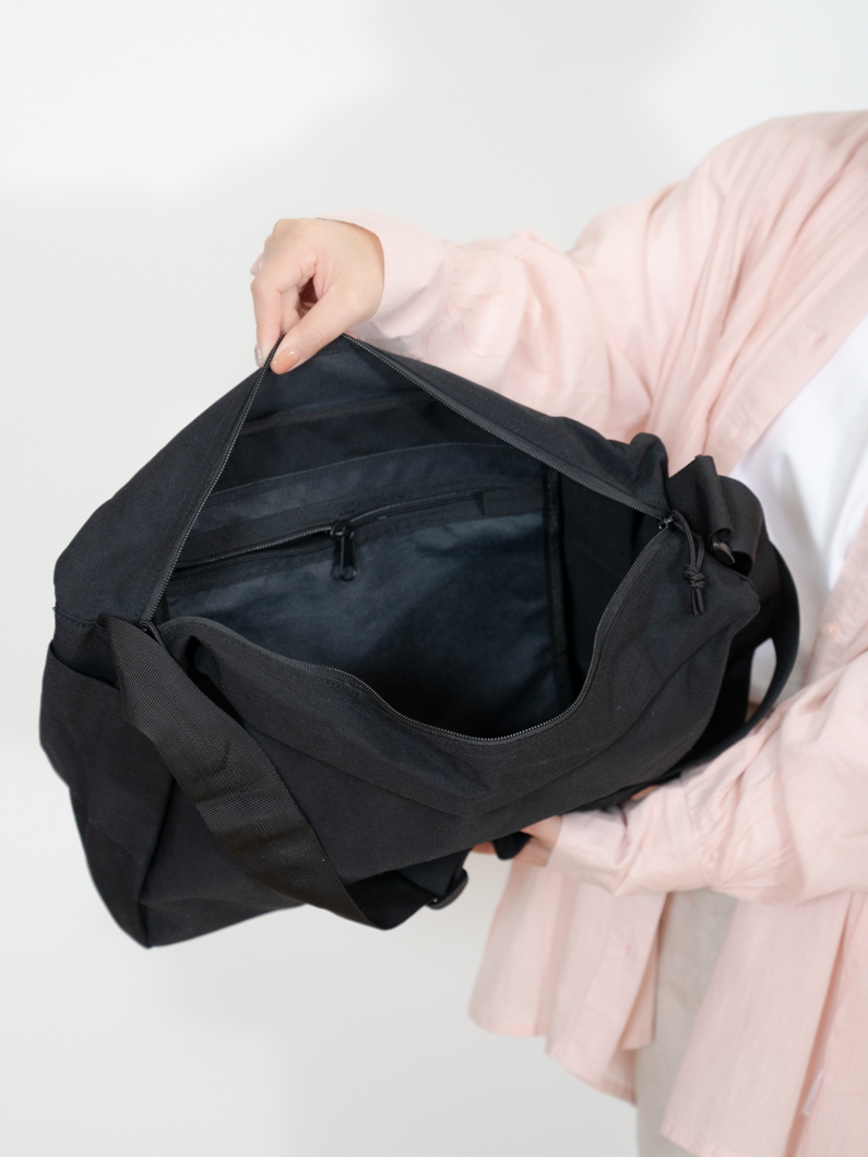 外側と内側1か所ずつ、マジックテープの大きなポケット