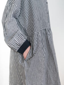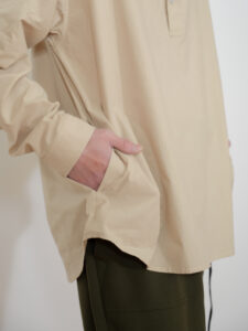 特徴的なのは丸襟と両サイドのポケット