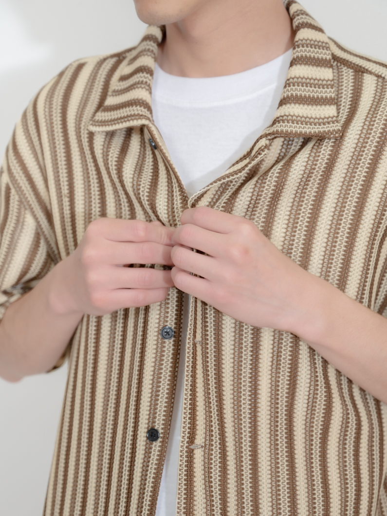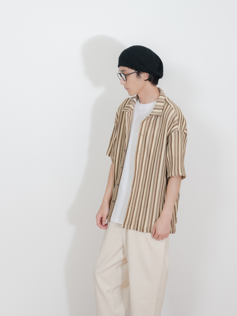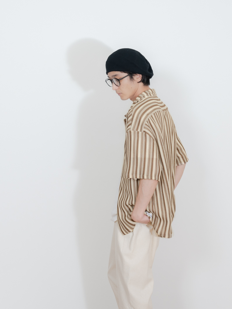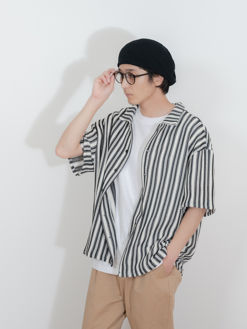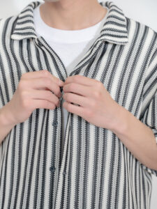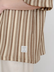 ストライプの柄も編地による立体感が生まれるため
