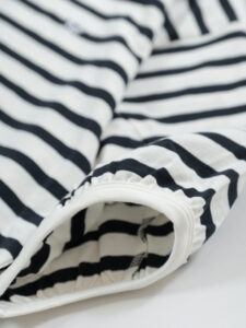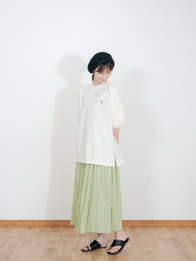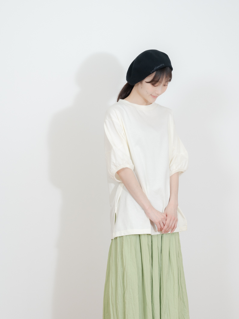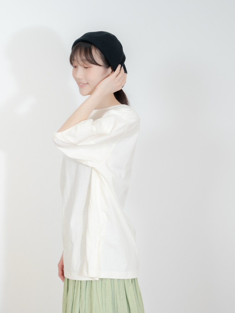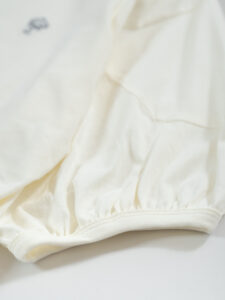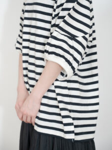 袖丈にたっぷりと長さを出して子供っぽくなりすぎないデザインに