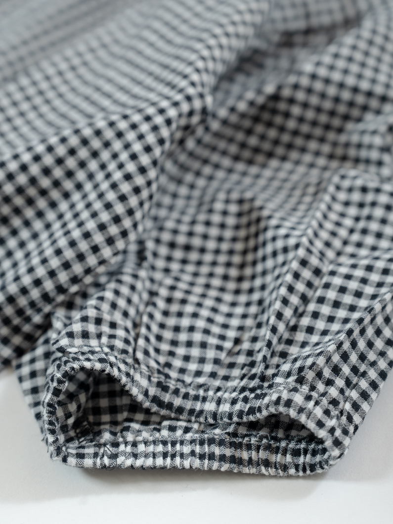 袖丈は肘が隠れる丈で、袖口はゴム入り