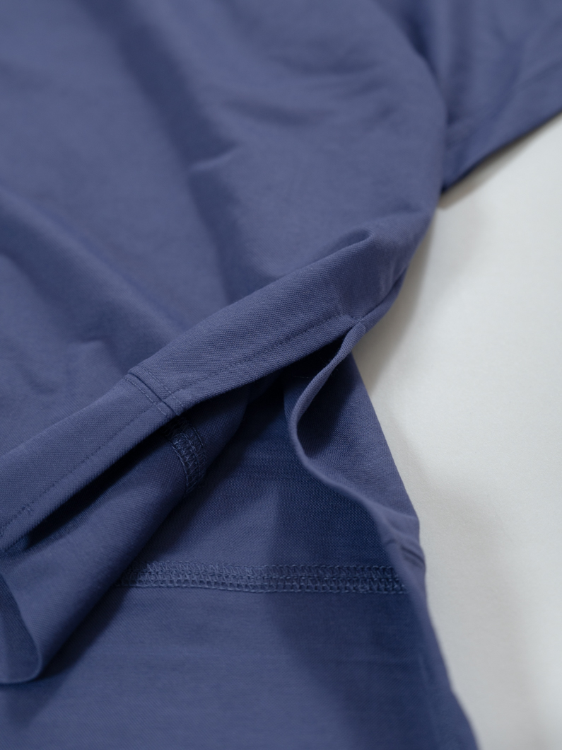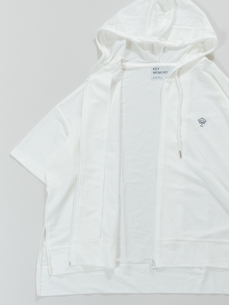 ゆるっとしたシルエットと半袖で抜け感を演出