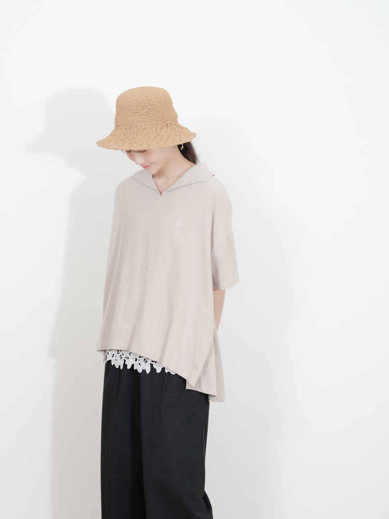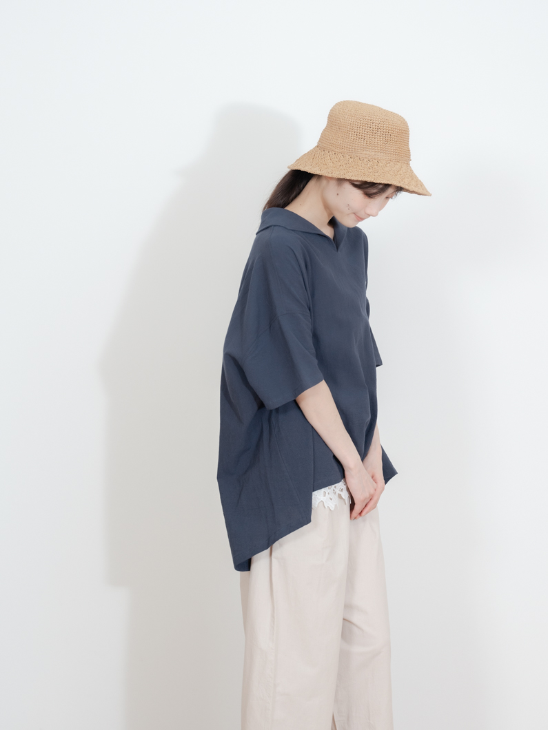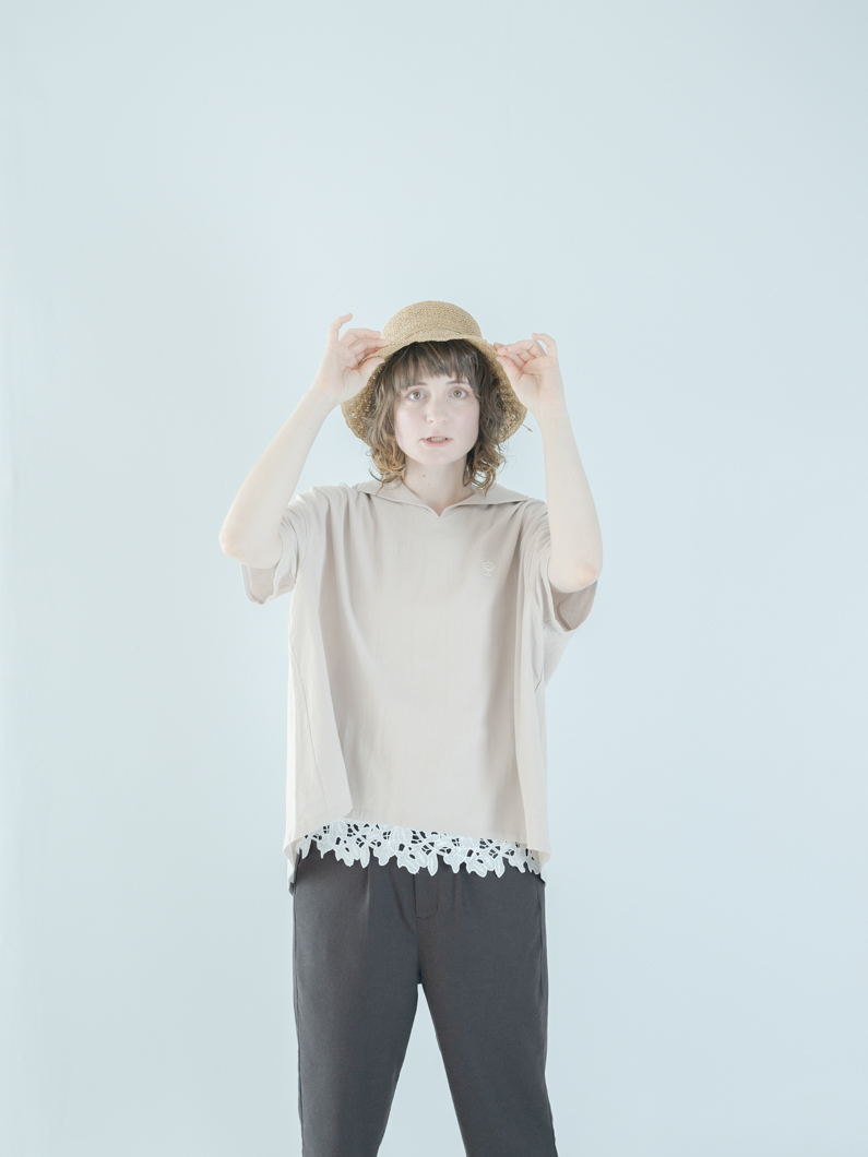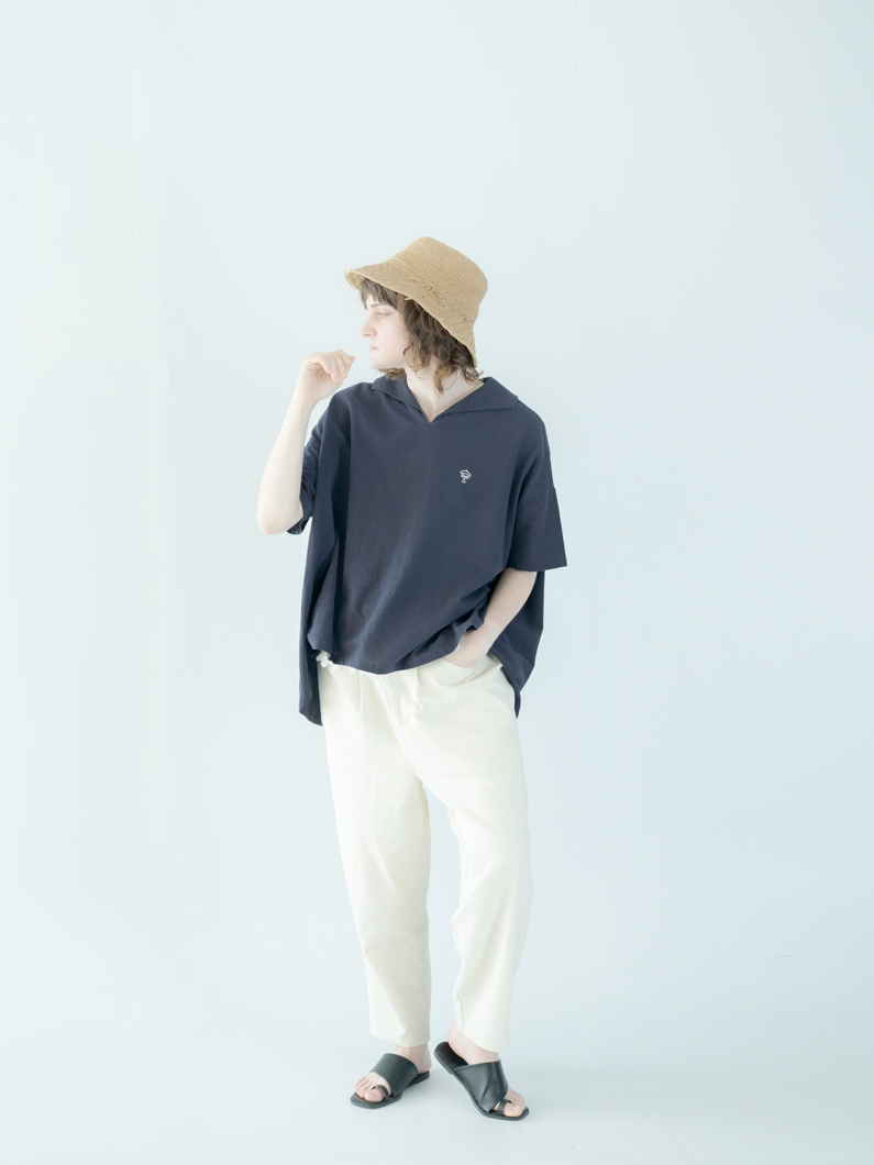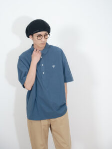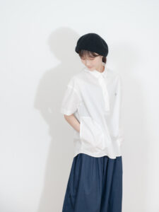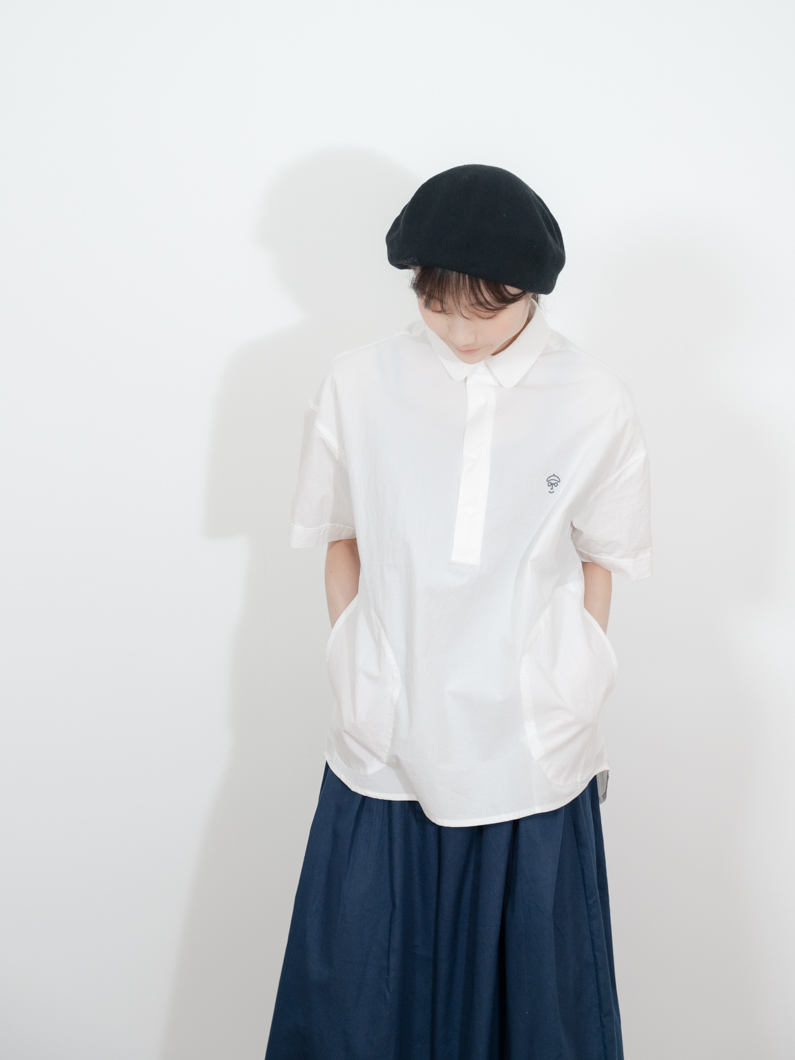 特徴的な丸襟と両サイドのポケットがポイント