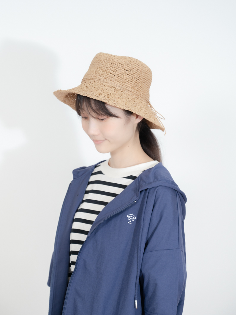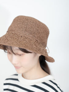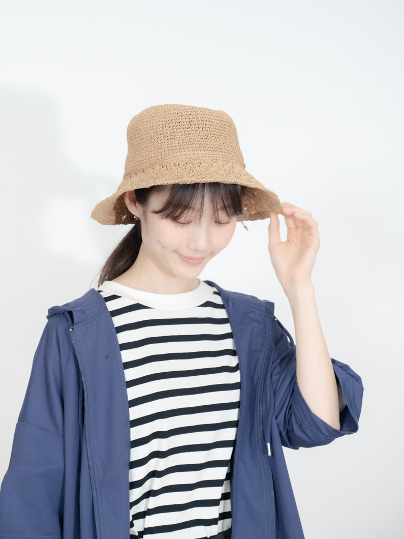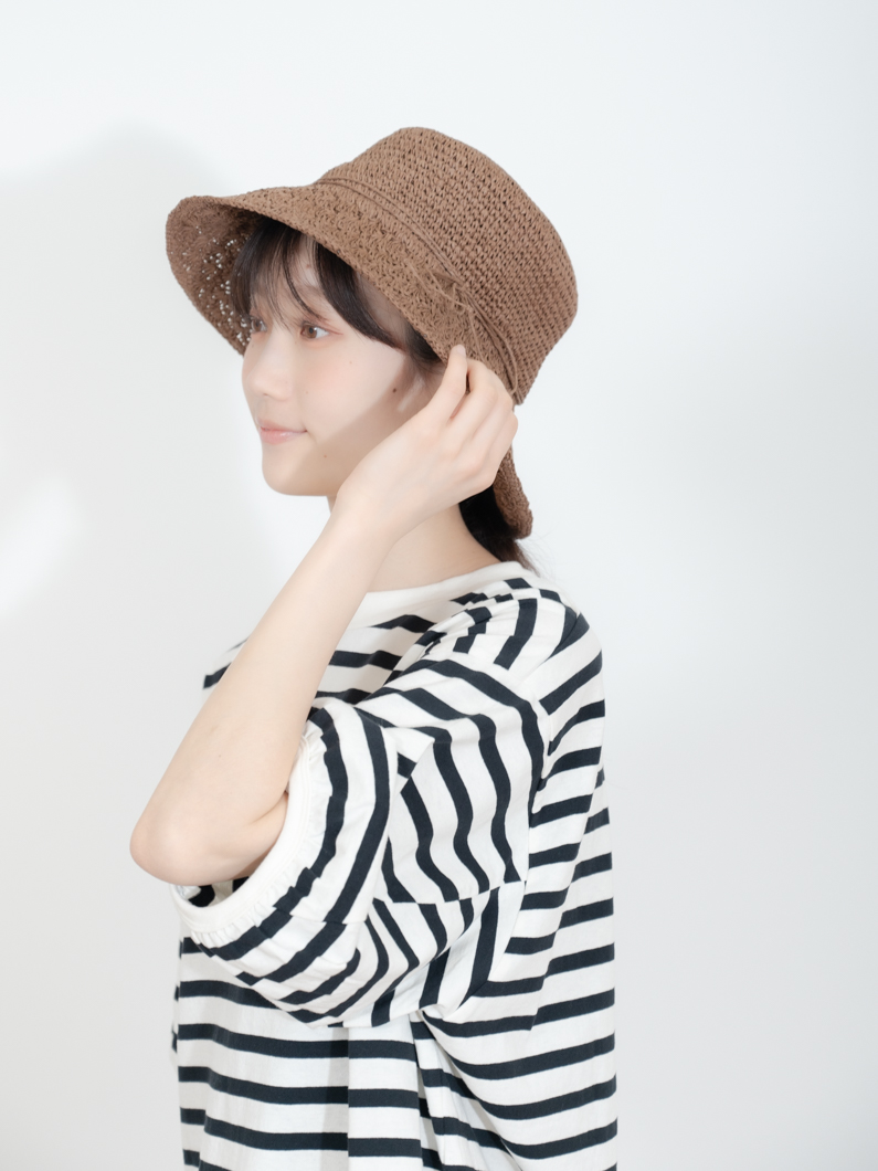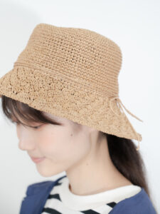 編み目は、つばの部分と異なる仕様で
