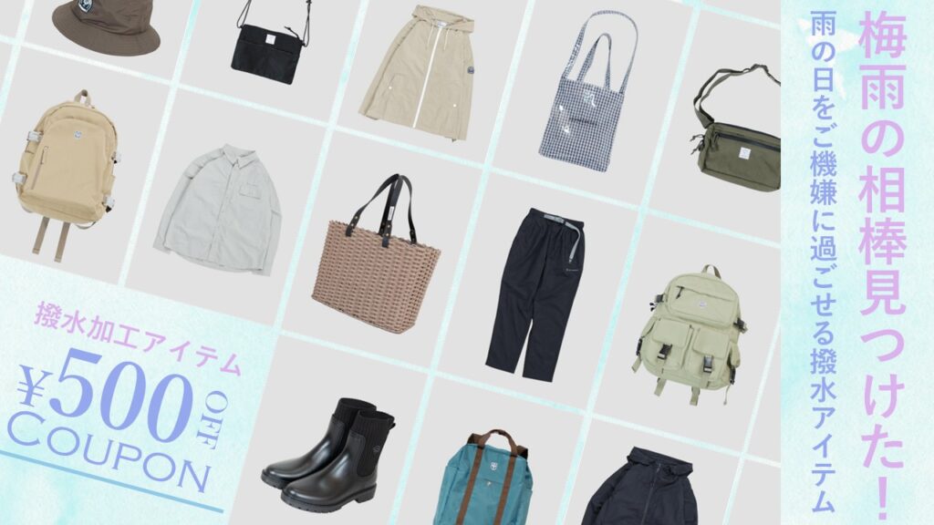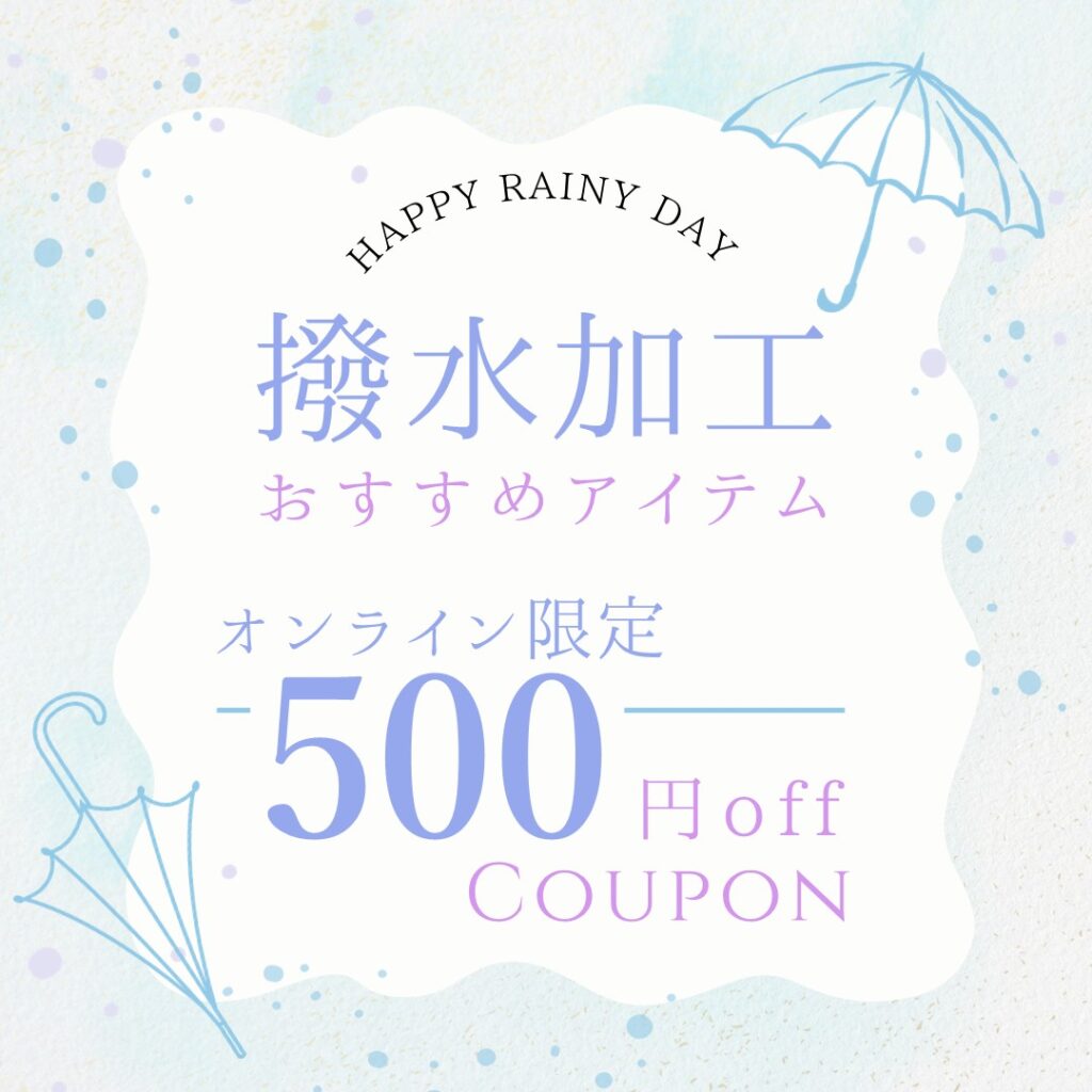 撥水加工アイテム購入で使用できる特別クーポンを配布しております!
